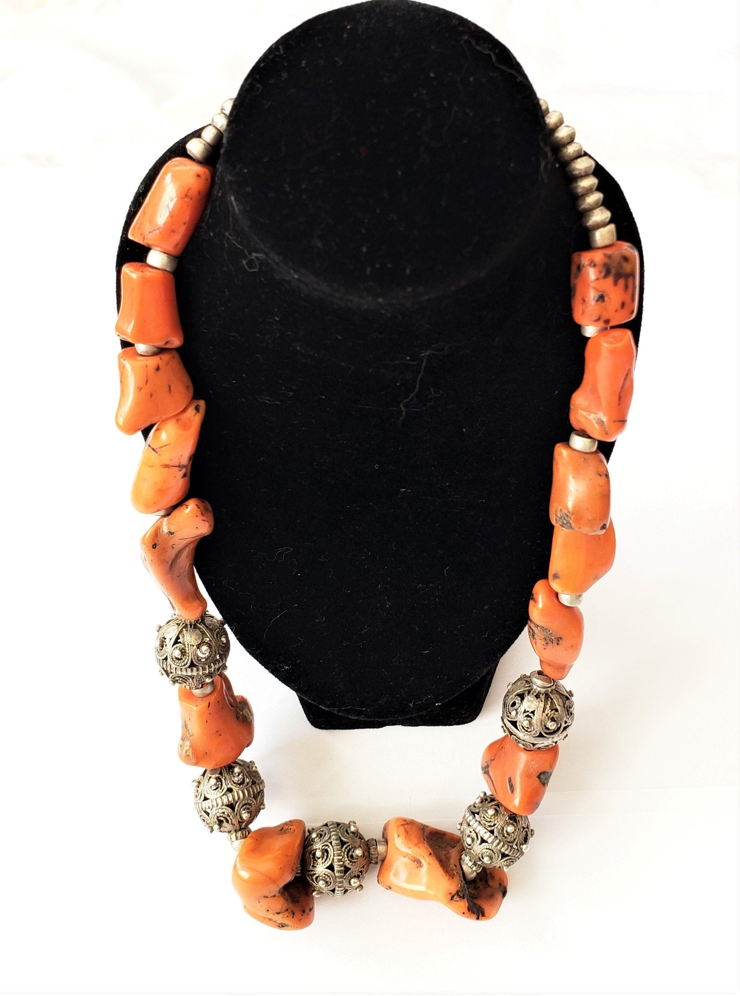 Antique Silver Bawsani filigree coral beads Necklace form Yemen tribal jewelry
