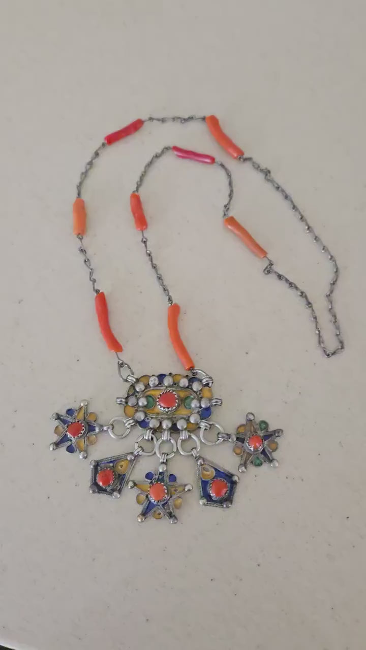 unique Antique Original 1930 Old Algerian. Kabyle natural Coral Beads Necklace natural Coral Old Silver Beads Necklace handmade really old from Algeria. in old natural Coral first half of XX century The total length of the necklace is Good condition with usual dents (see pictures). Collectible.
