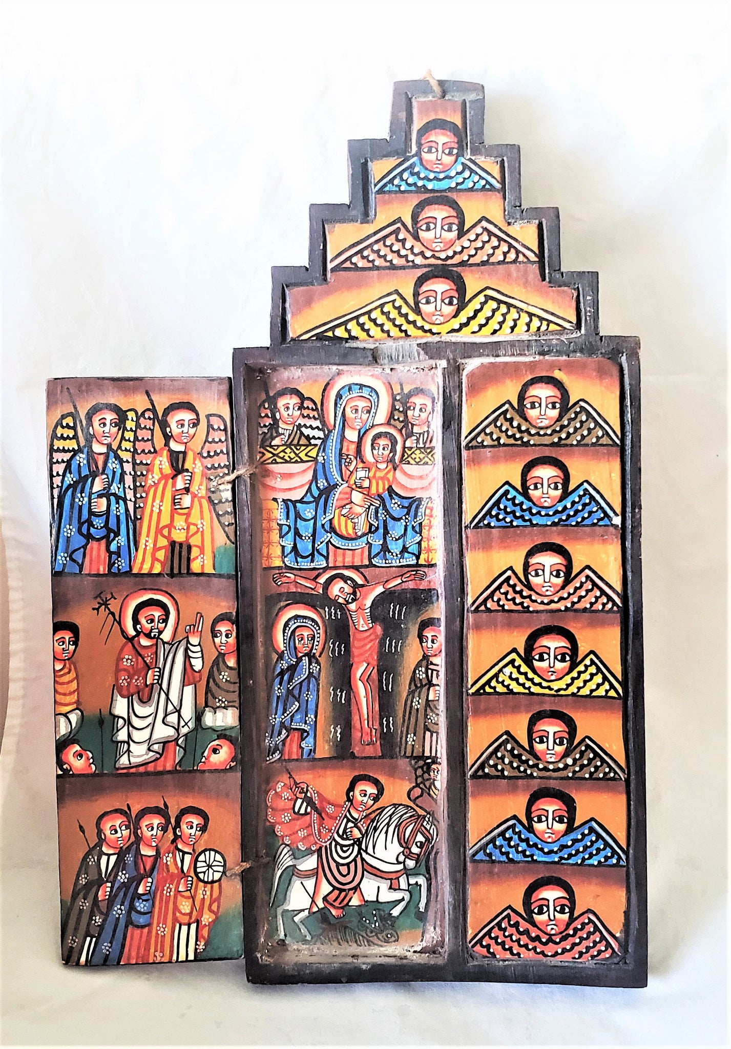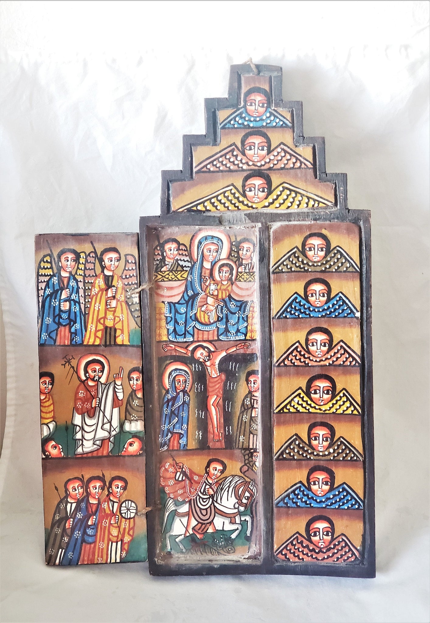 gorgeous Ethiopia: Hand-painted Ethiopian Coptic Christian Folding Wooden Hand Painted Altar Icon - of the Coptic Orthodox Church. It comes in a beautiful made out of Wood This is a very one of kind Very rarely they come like this a xlarge
