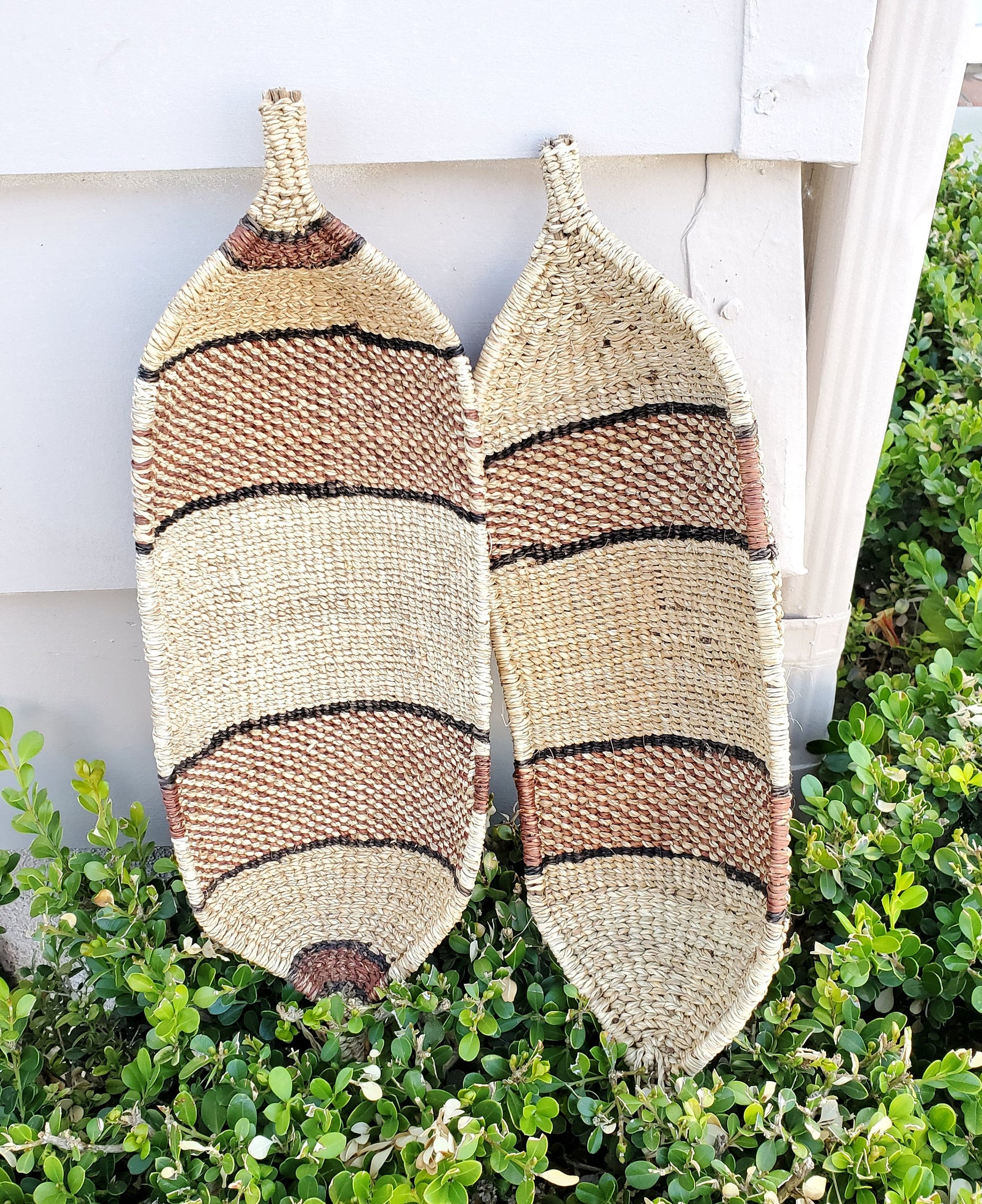This woven Boat Shaped basket comes in a variety of brown towns.