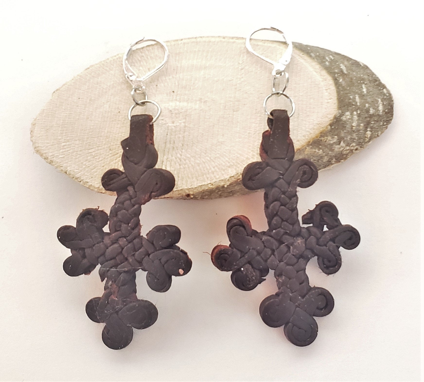 This is a very beautiful Hand Crafted Ethiopian Orthodox Coptic Leather Amulet Cross Earrings Hand Crafted Ethiopian Orthodox Coptic Cross Earrings Africa This kind of Coptic cross is a form of the cross which is worn by Coptic Christians, Ethiopian Coptic Christians,wear the cross as a symbol of their faith, and it symbolizes Christ, His sacrifice, and the eternal love of God. Measures 3'' inches x in length 1'' inches in width 925 silver Good condition useful as jewelry supplies other shop https://www.etsy.com/shop/Africanbazar2US?ref=seller-platform-mcnav