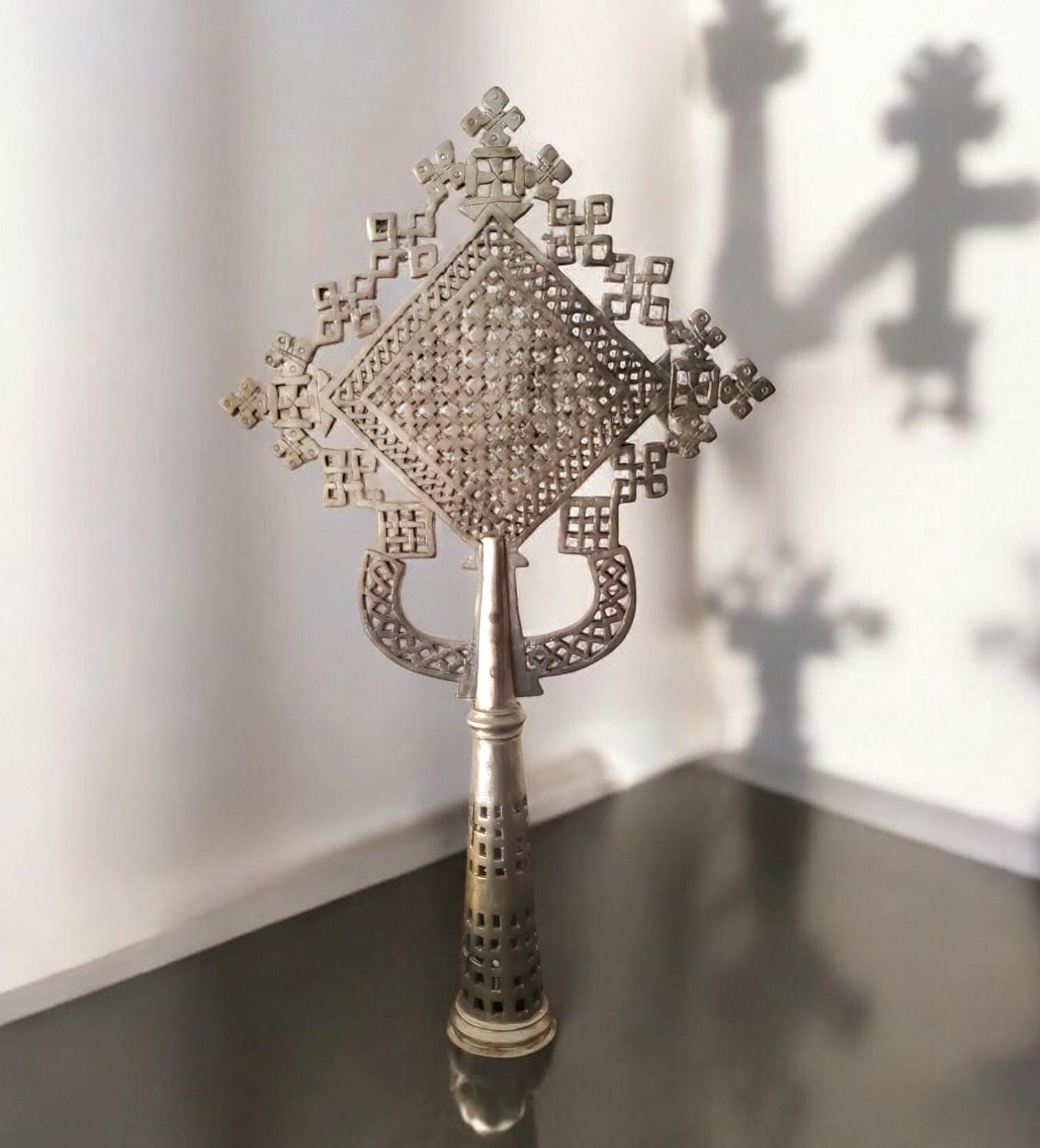 as a symbol of their faith, and it symbolizes Christ, His sacrifice, and the eternal love of God, Ethiopian Orthodox church from the earliest days of Christianity in Ethiopia. There are three basic types of crosses used by the Ethiopian Orthodox Church. These are professional, hand, and pendant crosses. The history of pendant crosses in Ethiopia goes back several centuries when wood crosses were given at the time of one‘s baptism and hereafter worn as a symbol of faith.