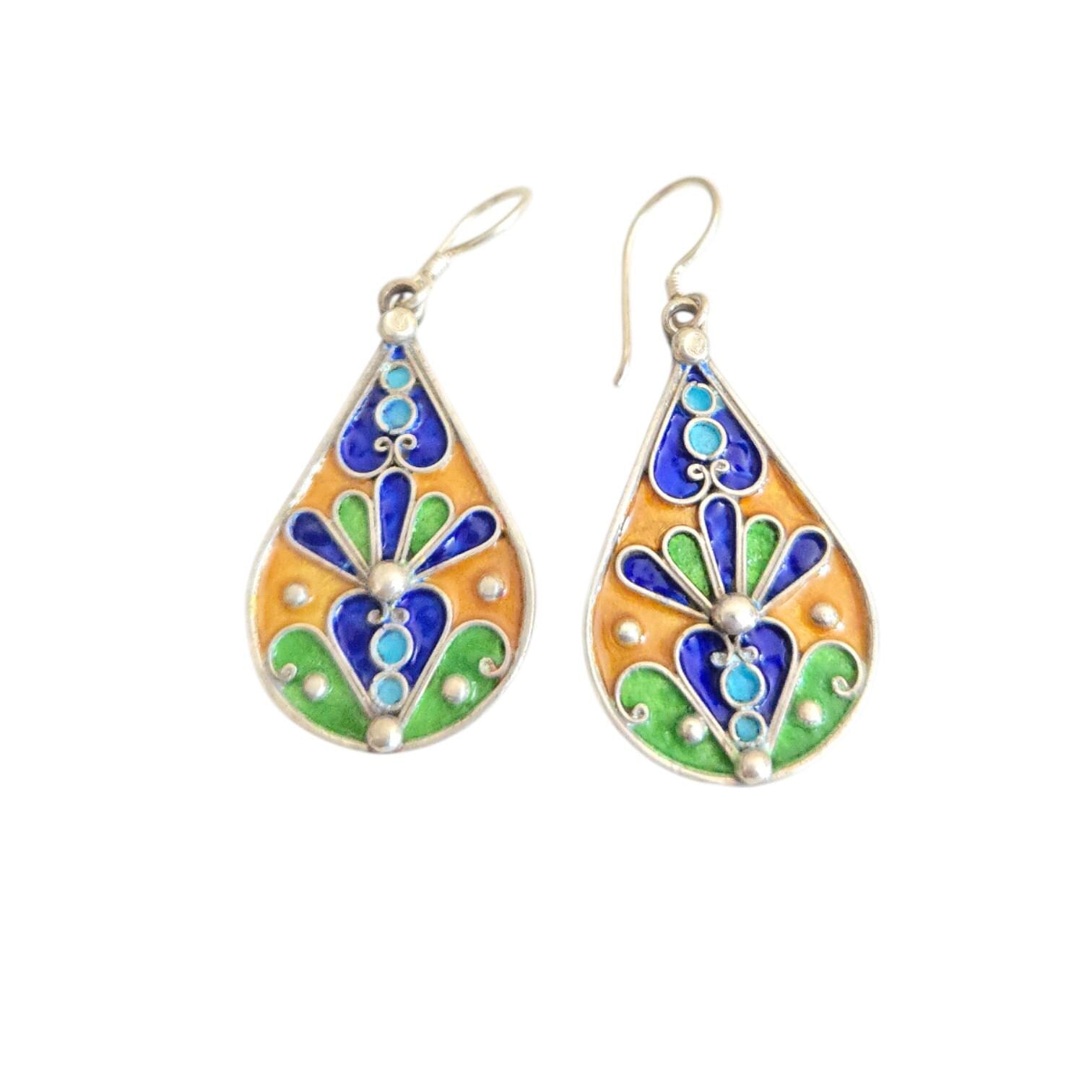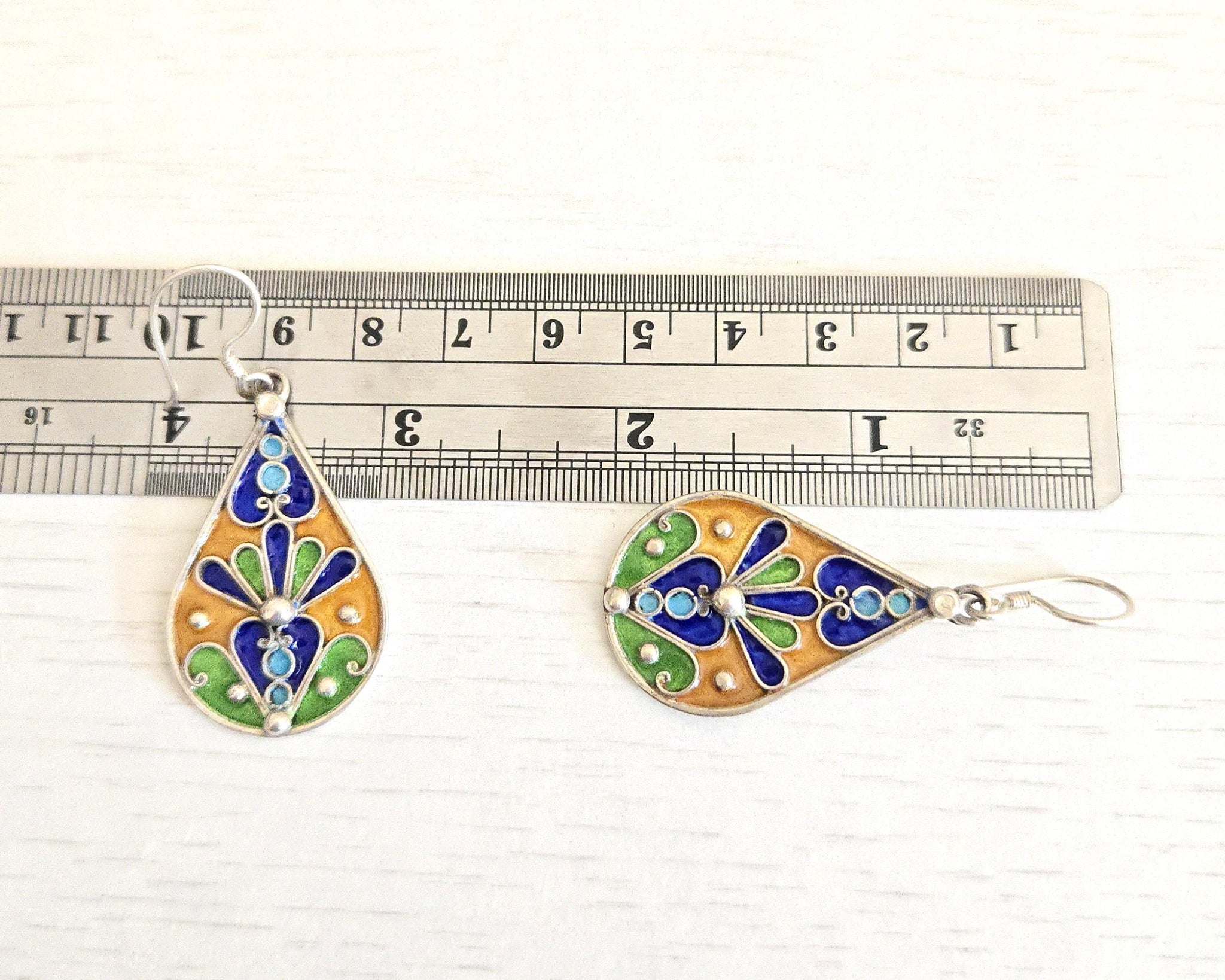 Moroccan Berber Enamel Sterling Silver Dangle Earrings