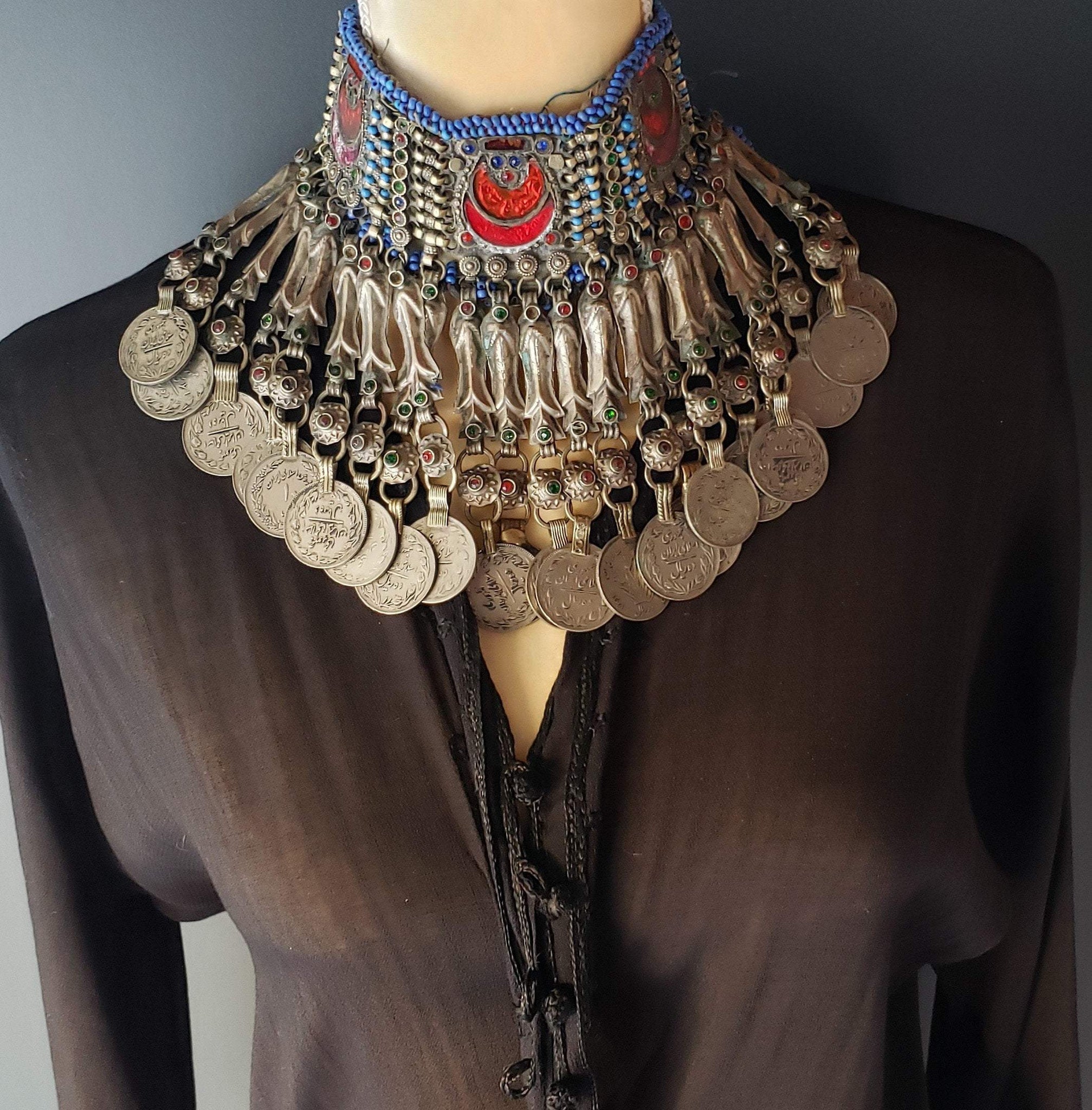 Beautiful Old rare silver tribal choker from the Pashtun nomadic ethnic groups in Afganisthan. Silver is mixed.