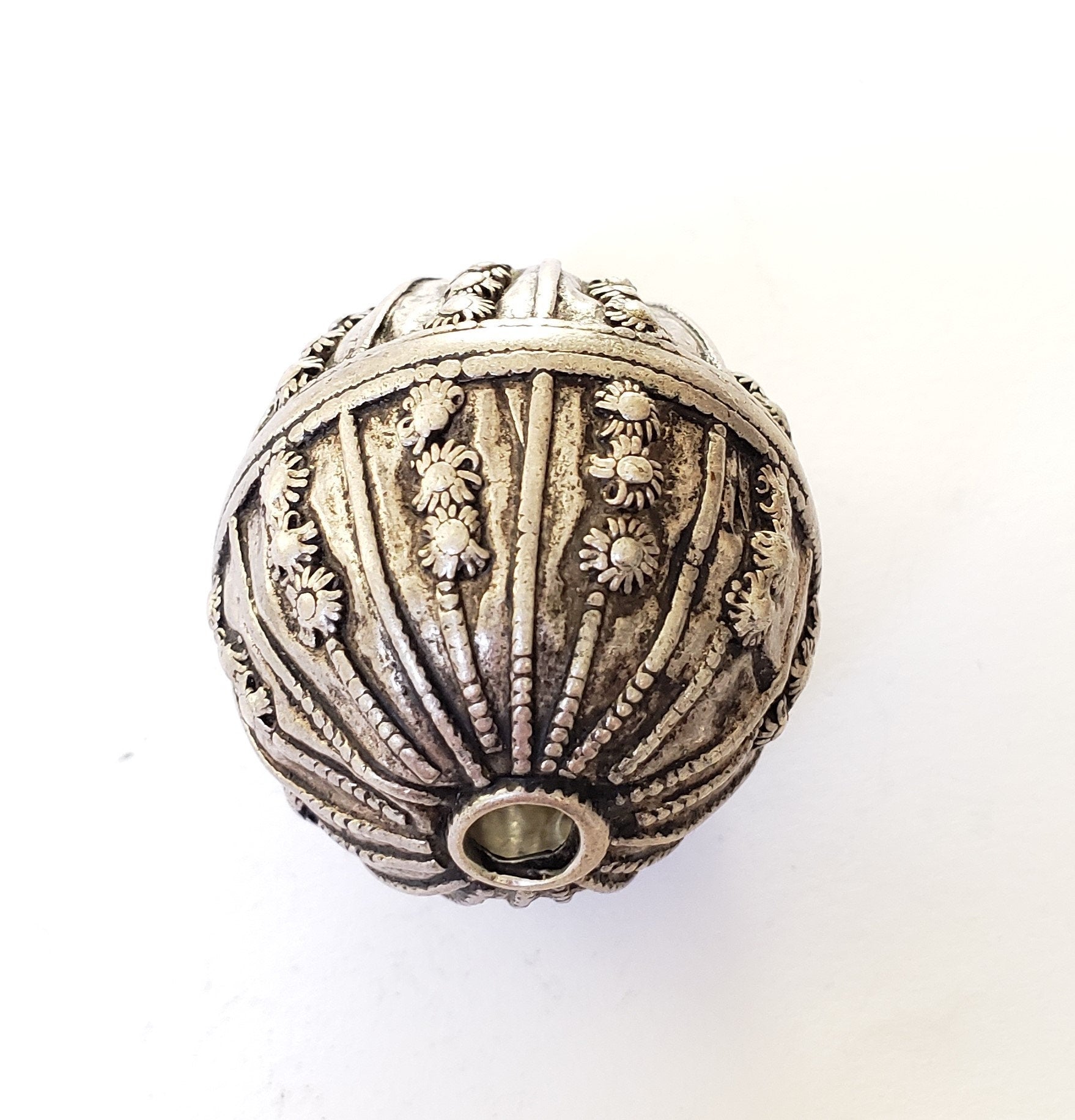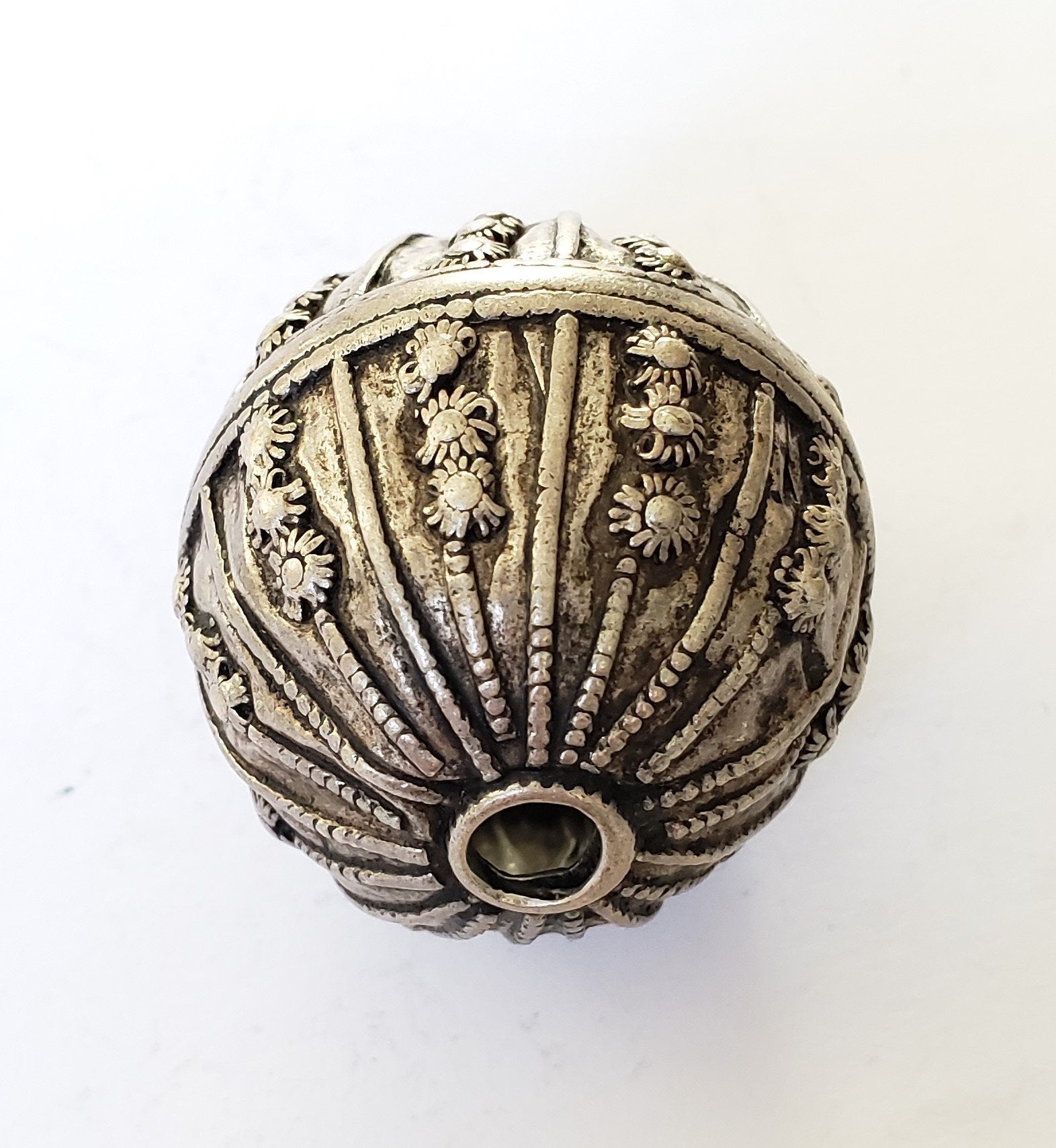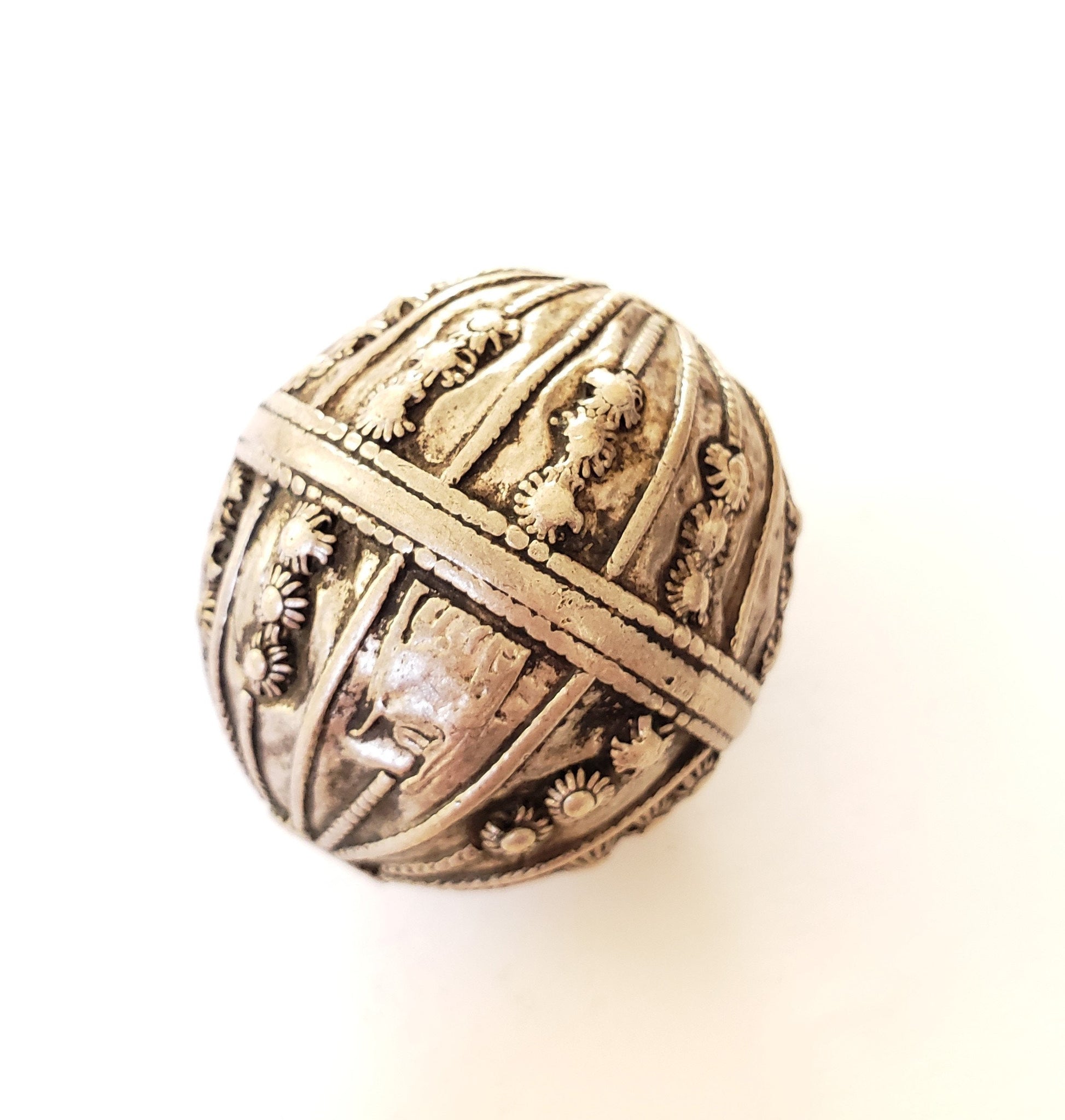 old silver hallmarked beads from Yemen, circa 1910s. Rare with intricate silver smiting Beautifully made, decorated and shaped. Good alloy of silver. Old pieces with beautiful patina,This kind of ones. Good condition Collectible and useful as jewelry supplies Measures:1''.5x 1''.5