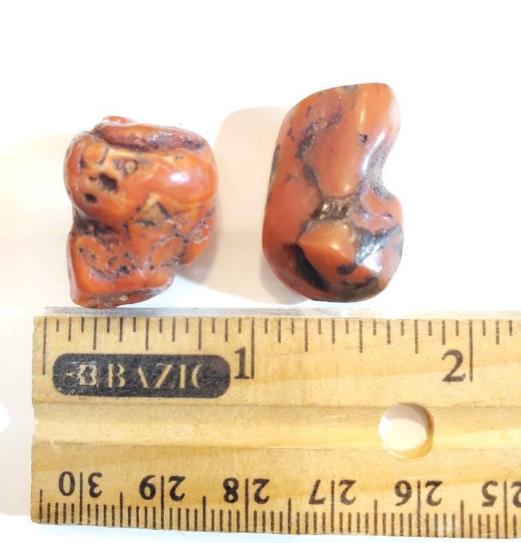 Antique Berber Branch Natural Red Coral Beads 13 gr A fabulous very rare very OLD definitely collectors item..This type of coral bead they are over 300 years old. Mediterranean coral from Morocco. Berber coral bead is very rare and hard to find. I have had this over fifteen years and decided to sell it now from my collection.If you have any questions or you like to see any more pics, please do not hesitate to contact me. The beads that you see is the exact one that you will be receiving.The Coral Beads are nice pieces measures 33mm by 22mm The holes are 1-2mm. The total weight is 13 grams Coral works on the layer of energy that lies close to the physical body. This layer is comprised of the vibrations or life essence, emitted by the body‘s cells. Coral helps one in their ability to cleanse, strengthen, repair and rebuild the structure that houses their life essence. other shop https://www.etsy.com/shop/Africanbazar2US?ref=seller-platform-mcnav