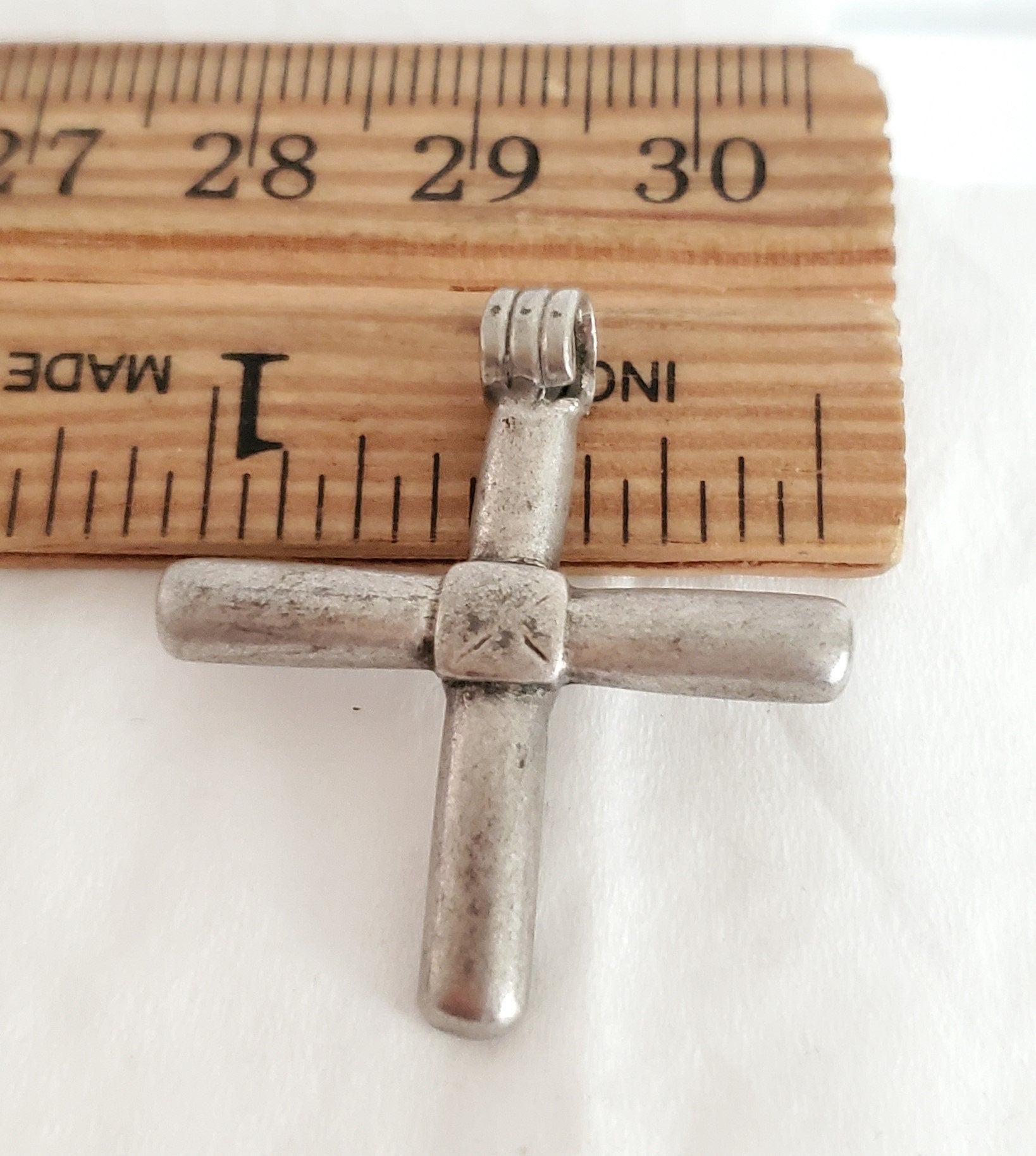 beautiful old handmade Ethiopian cross pendant made of silver . In Ethiopia particularly among Orthodox Church followers, to wear a cross implied to be protected by the lord himself as well as to show that they are a devoted Christian. Neck or pictorial crosses are tied round their owner’s neck with a piece of blue thread or cord, which was sometimes given to the wearer at baptism. This particular cross pendant is old and has been used. Measures approximatelty 1" x 1‘‘.5 long Age: over 100 great condition Collectible other shop .....africanbazaarus.com