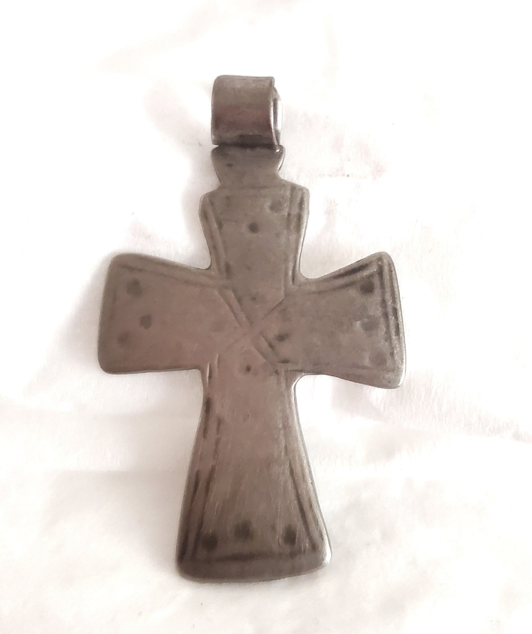 Antique Ethiopian Silver Cross Pendant: Boho Amulet Jewelry