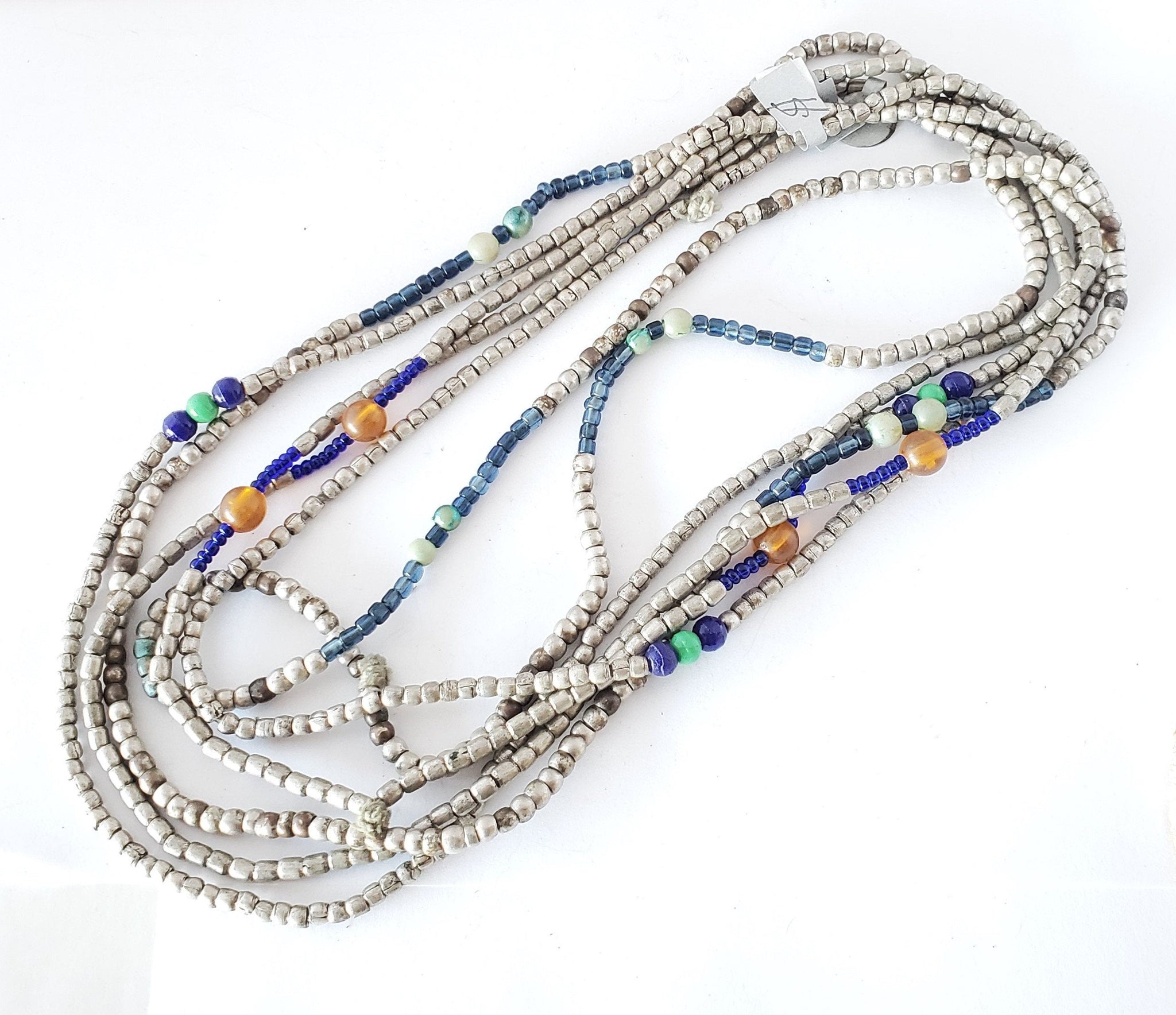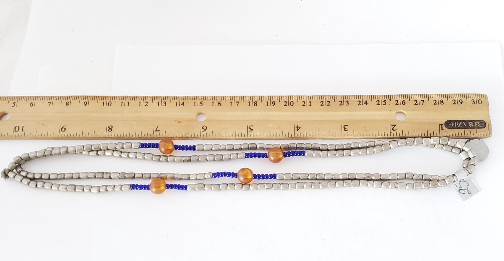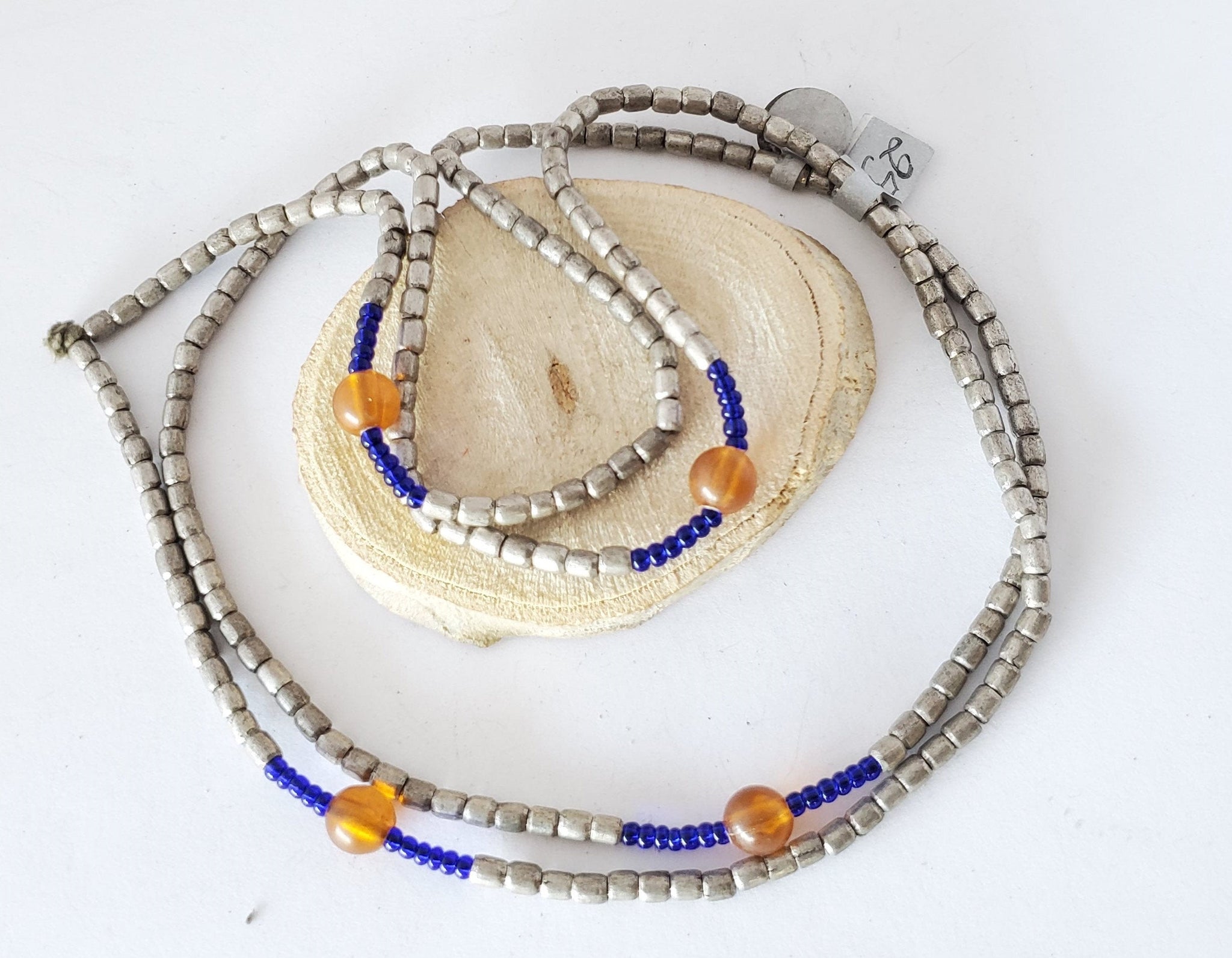 beautiful! strand of antique silver heishi and beads from Ethiopia. Most are 4mm diameter on raffia 40 inches strand Silver bead measures of 2mm diameter x 3mm thick and The hole is 2mm wide/ heishi from Ethiopia; high silver content. Over 100 years old....