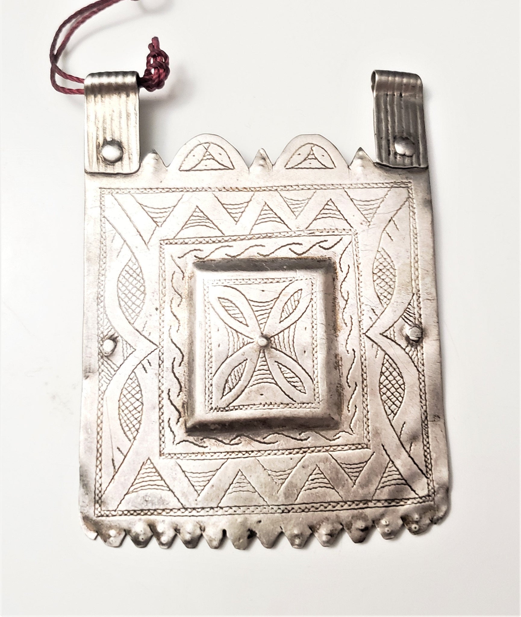 Antique large Tuareg Silver Pendant from Niger, Old African Pendant tribal jewelry These Pendant make very appealing pendant They also serve as focus Pendant for hanging on a string with other beads or with old silver chain or for a jewelry designer to use in a fantastic necklace.it fit onto the fine braided black leather cord if you wish to wear it all by itself. This intricately worked Vintage Tuareg Silver Pendant Pendant ' Measurement Length of Pendant-(3'' in by 3'') 30 gr. vintage item which may reflect signs of usage and wear. in very good condition (see pictures) Collectible 925 Silver