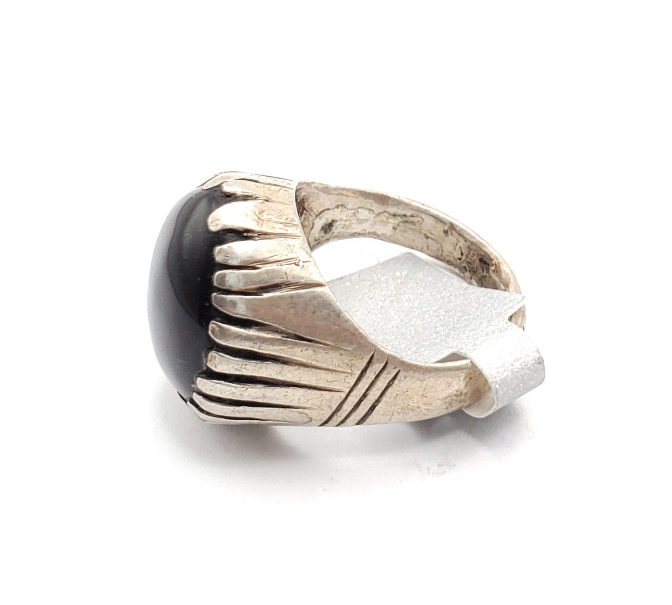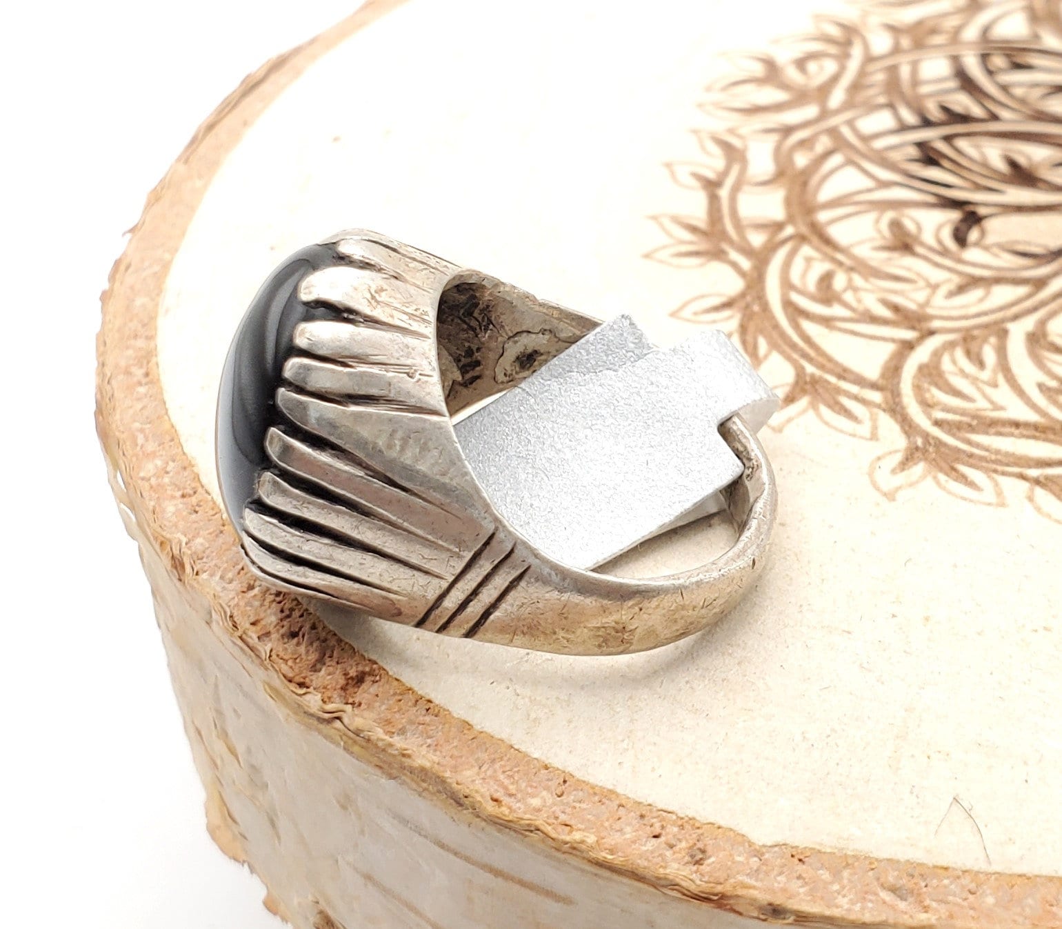 old Yemeni Silver Ancient Carnelian ring from Yemen from the 1930 century The decoration is made using vintage Silver Ancient Carnelian The Bedihi´s were responsible for the best quality granulation work like this ring, and also all kind of berry Yemeni beads Unique Yemeni Ring size 8.5 x 1'' Weight: 12 gr.Good condition size (see pictures) Collectible It is not marked but acid tested positive for 925 Silver,