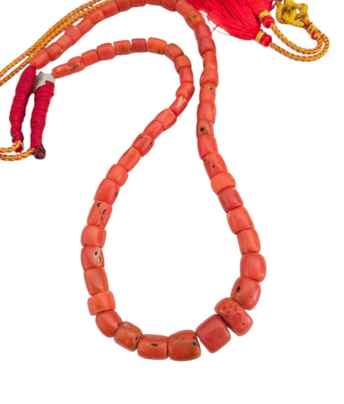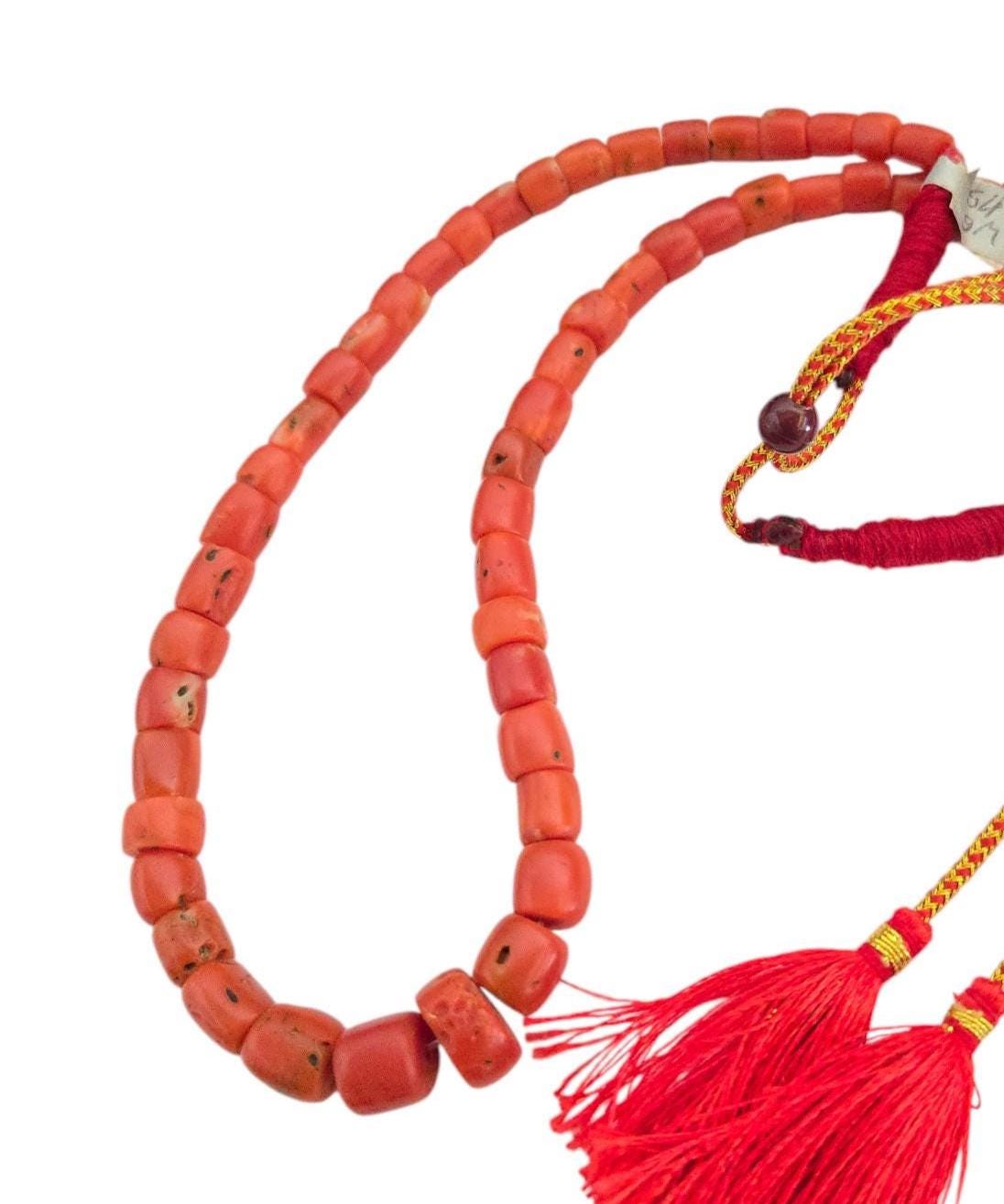 Antique Yemen natural Authentic Red Coral Beads necklace. Very old natural beads antique Red Coral Islamic Beads/Worry Beads from Yemen made in excellent condition. quality from first half of XX century The total length of the necklace is 18‘‘adjustable strain to 30‘‘ (see pictures). Collectible. Measures: a little over 6mm x 10mm Good condition 45 grams .
