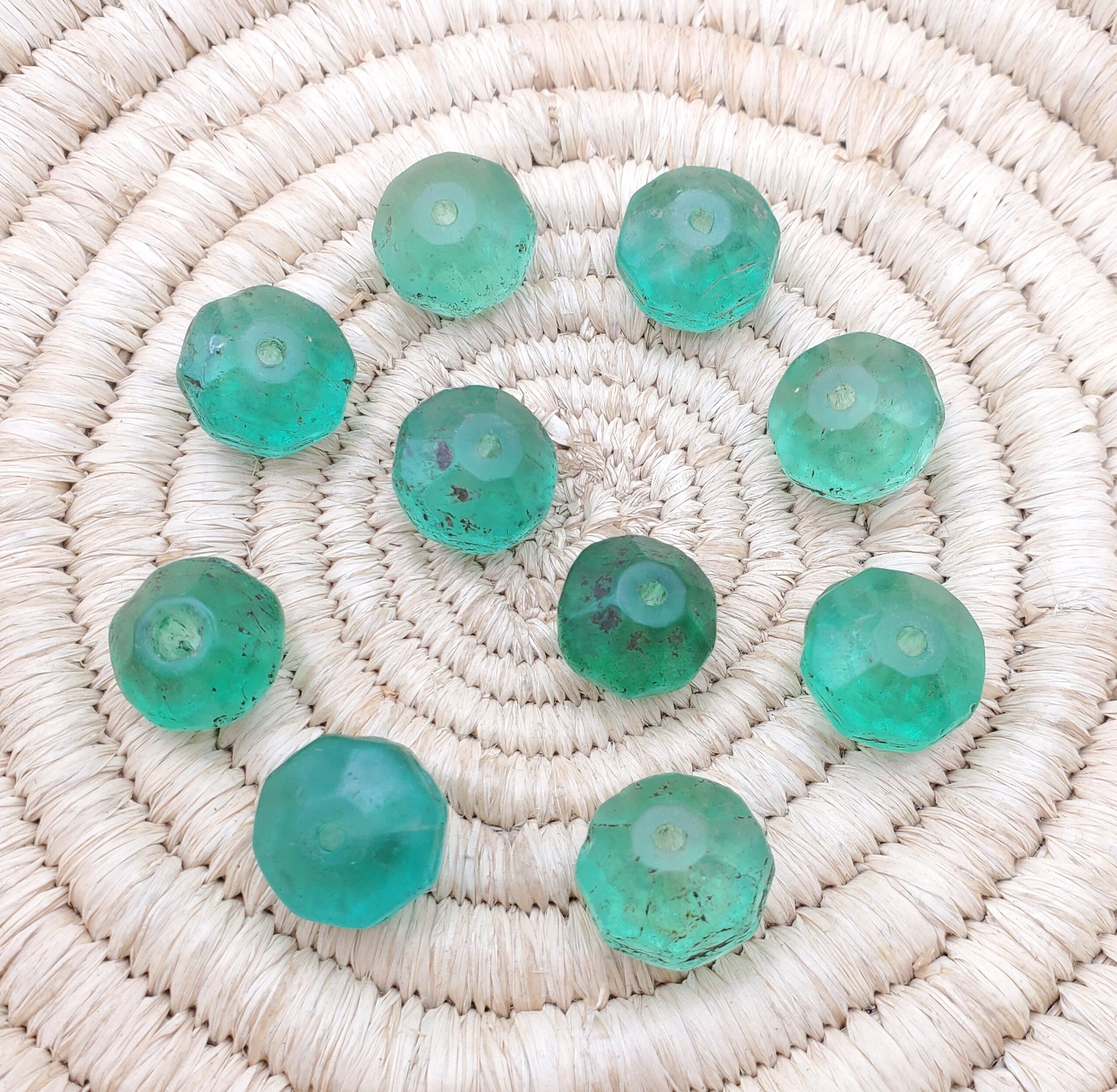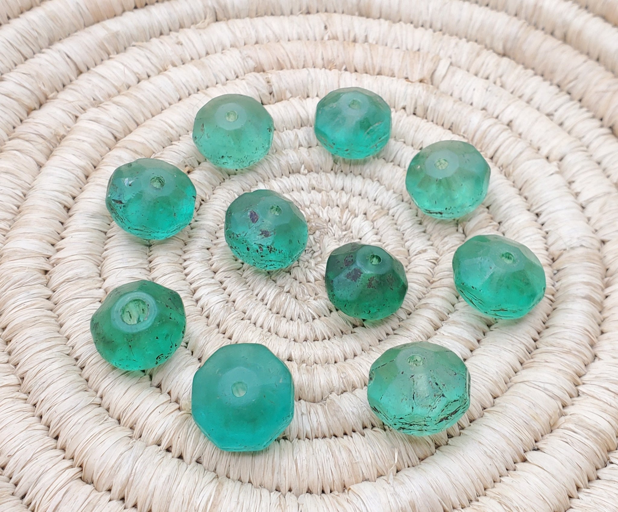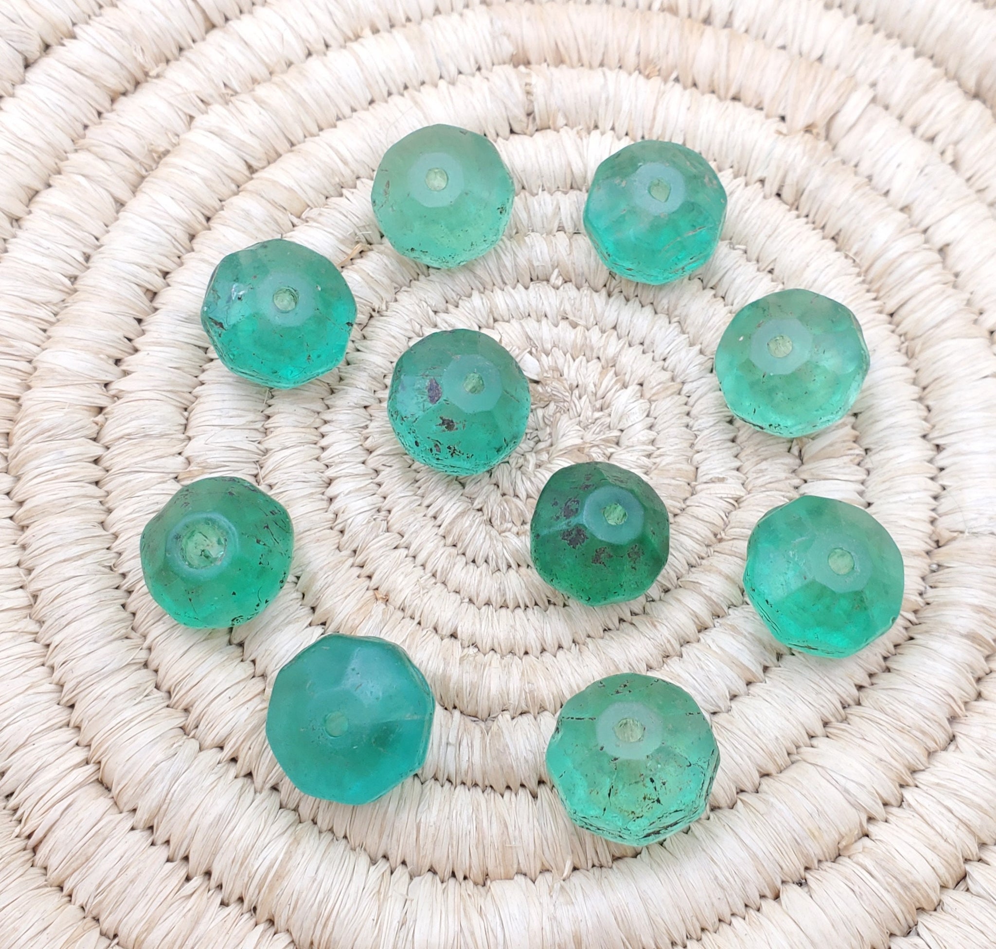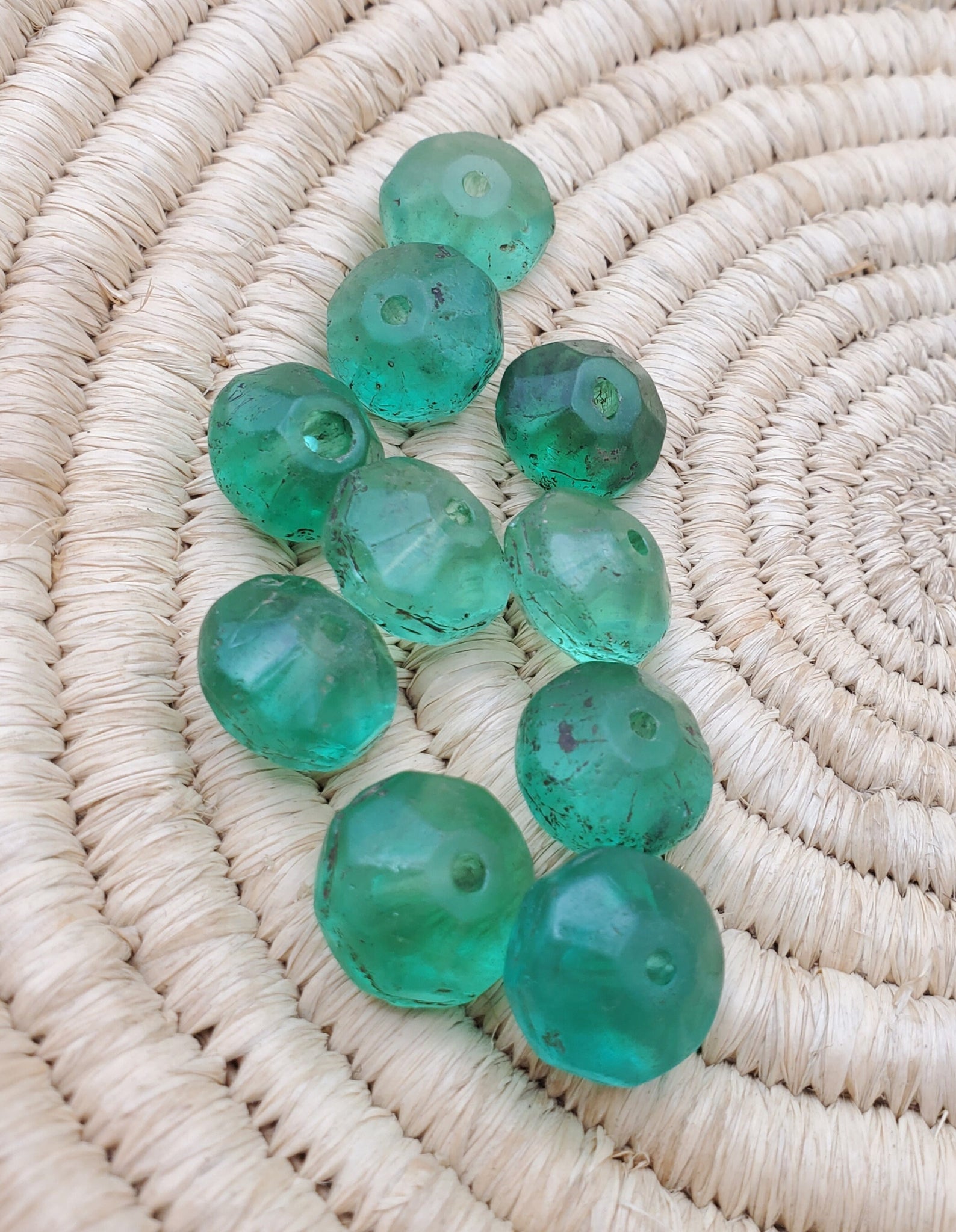 10 pieces of old green Vaseline Beads (uranium glass beads) made in Bo