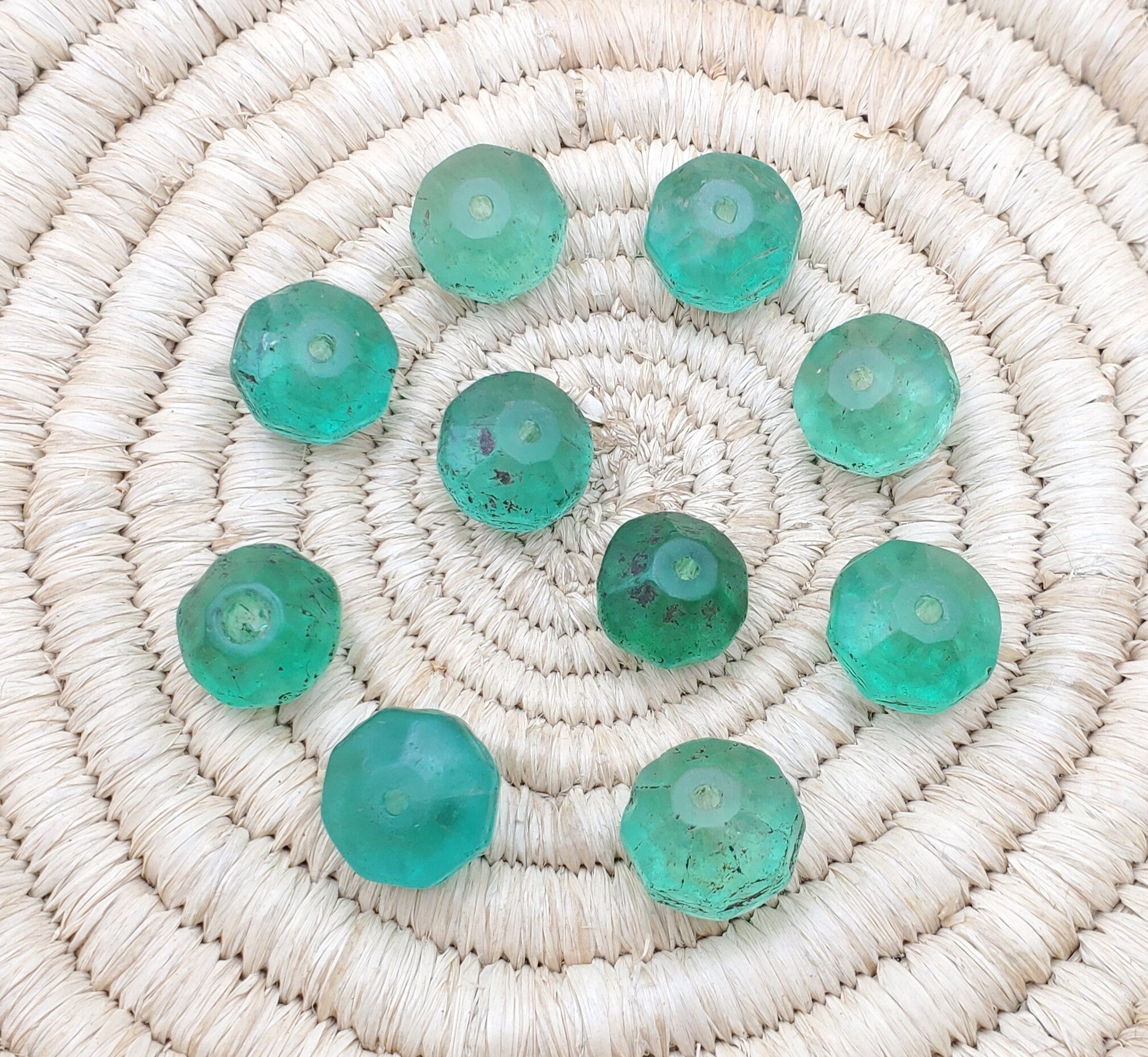10 pieces of old green Vaseline Beads (uranium glass beads) made in Bohemia/Czech Trade Beads- African Trade Beads, 19th centuries,