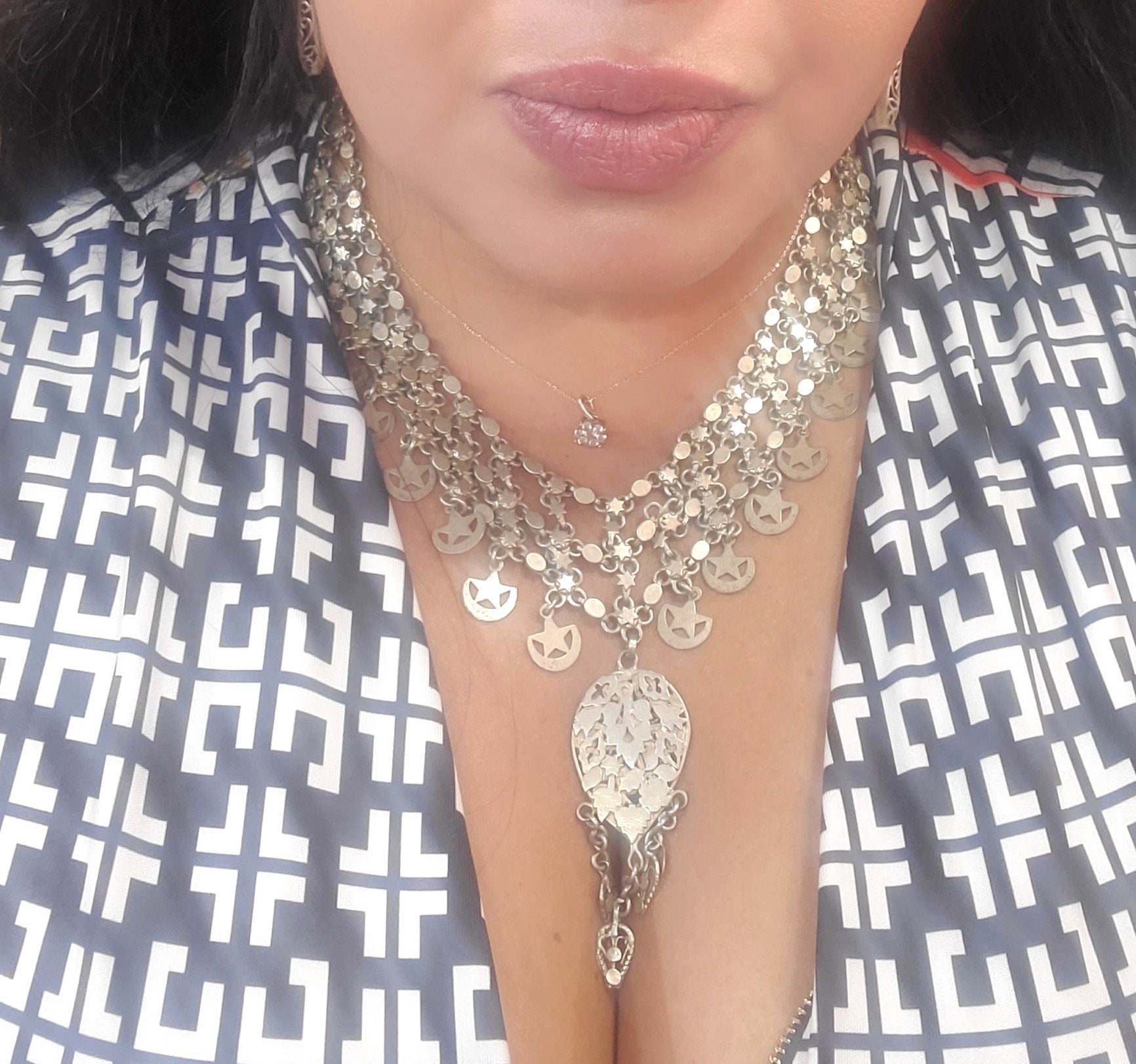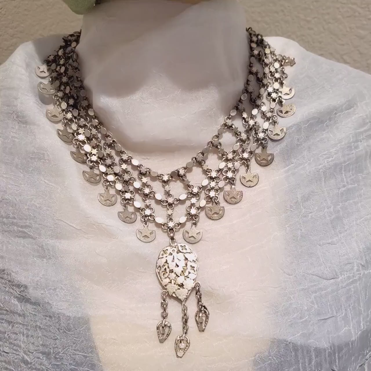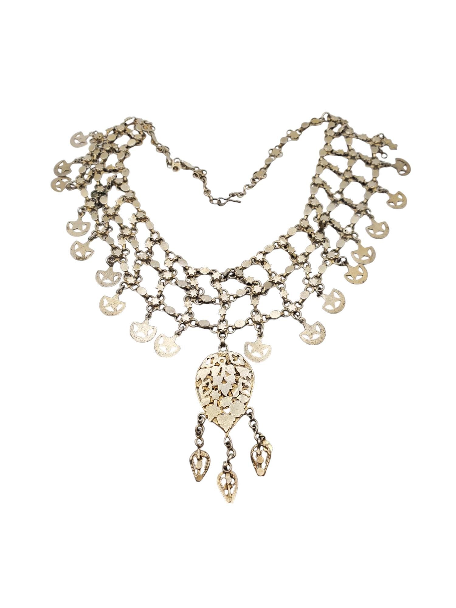 Silver: See similar necklace: The Yemenites. Two thousand years of Jewish culture. page 134. Muchawsky-Schnapper.The Israel Museum, Jerusalem. Collector´s piece.Thank you for visiting my shop All my jewelry has been collected over 18 years ago.I will be listing more pieces shortly as I am constantly always working on posting more. piece to add to the collection.