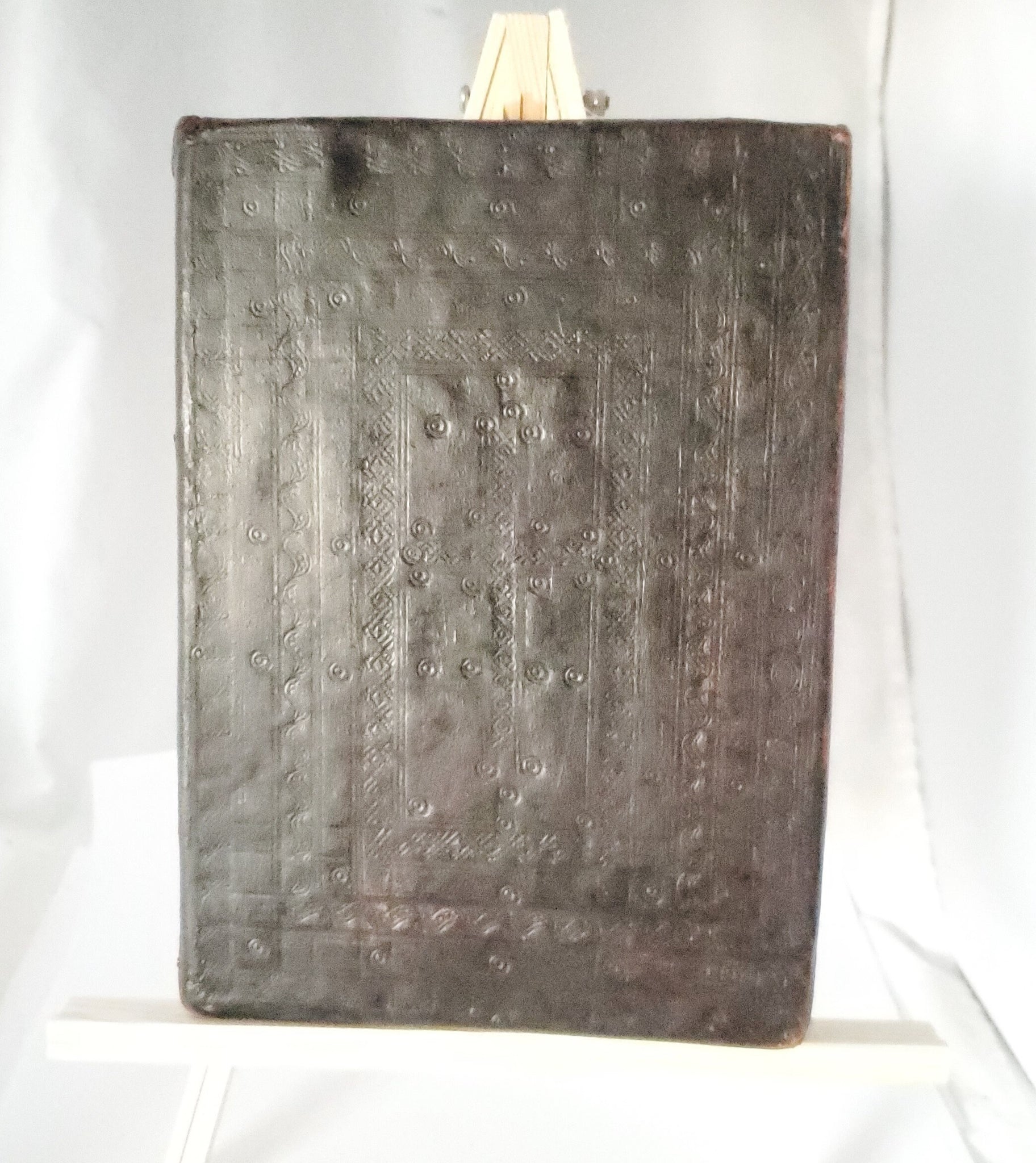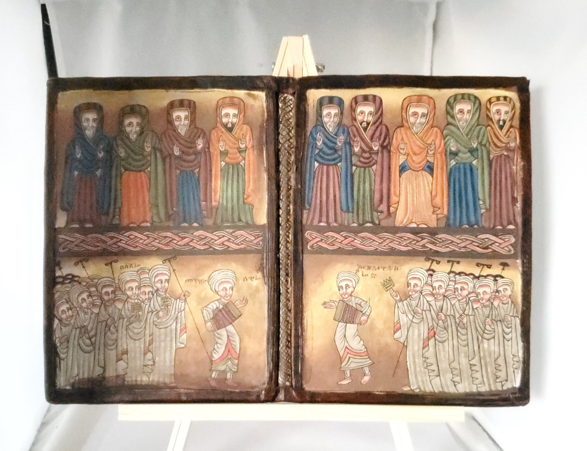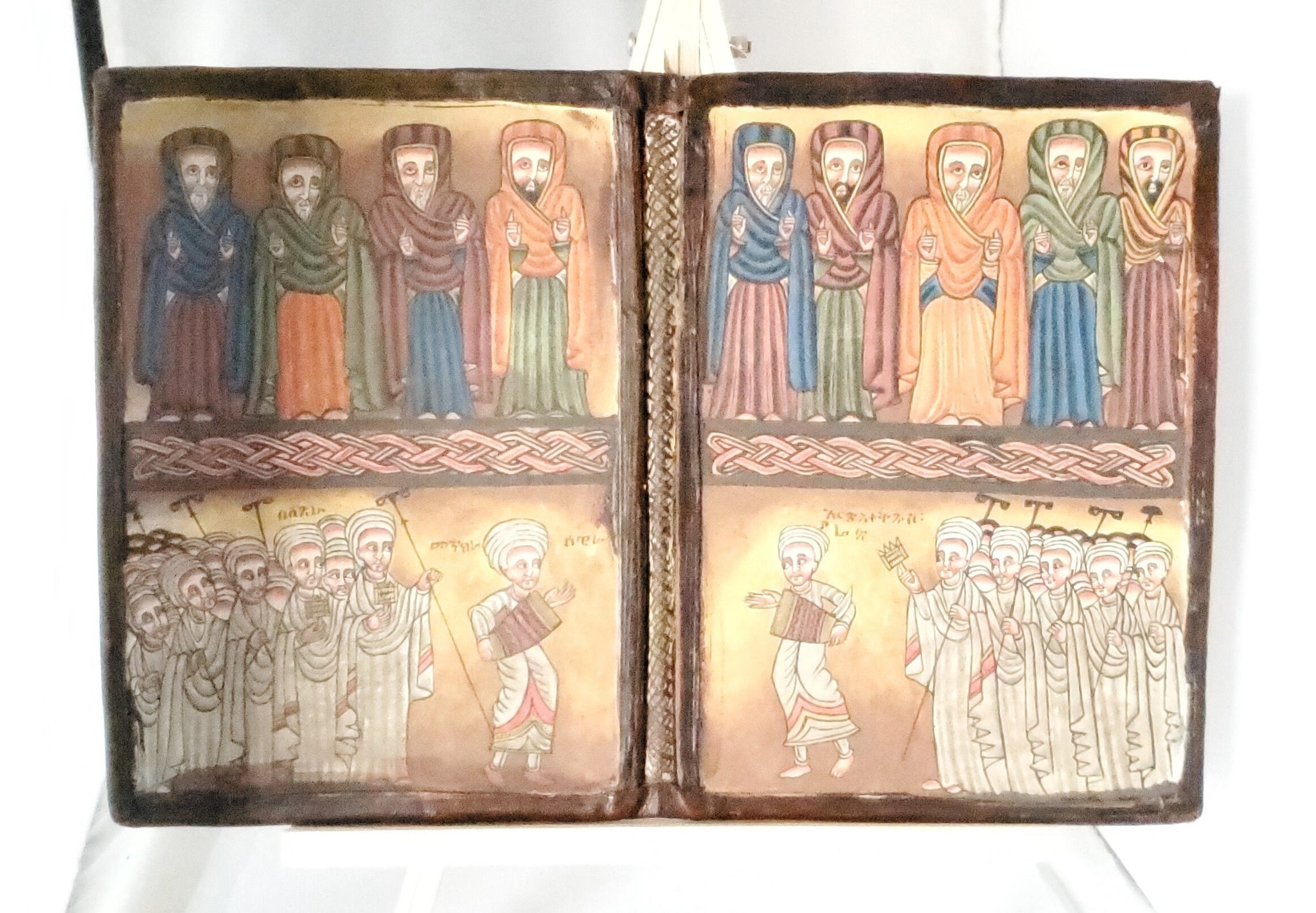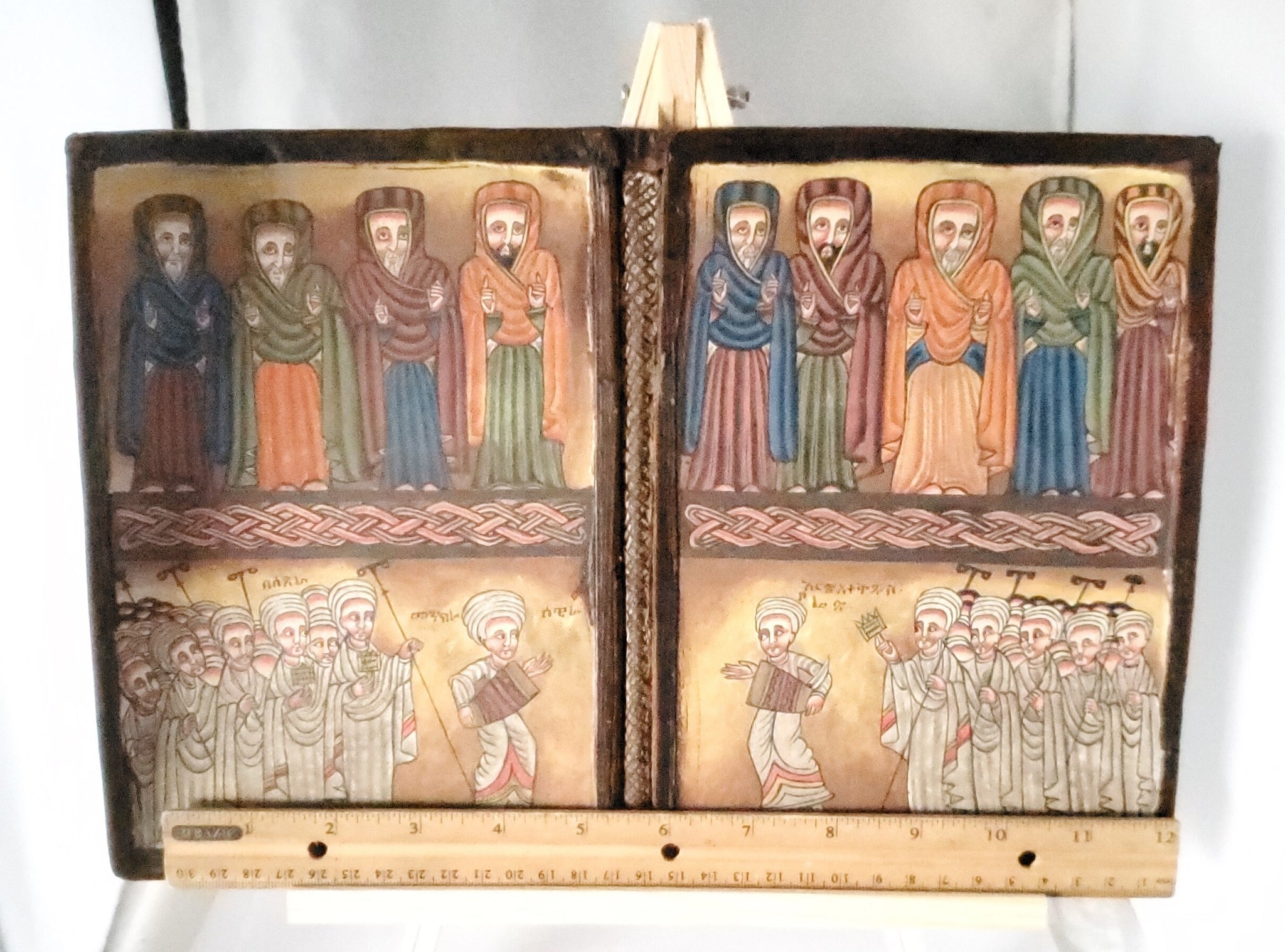 antique gorgeous Ethiopia: Hand-painted Ethiopian Tempera on Wood and bonded with leather,