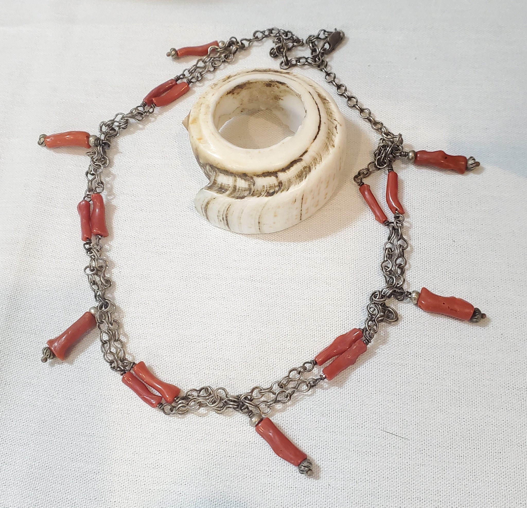 Antique Moroccan Berber natural Coral Silver Pendants Necklace
