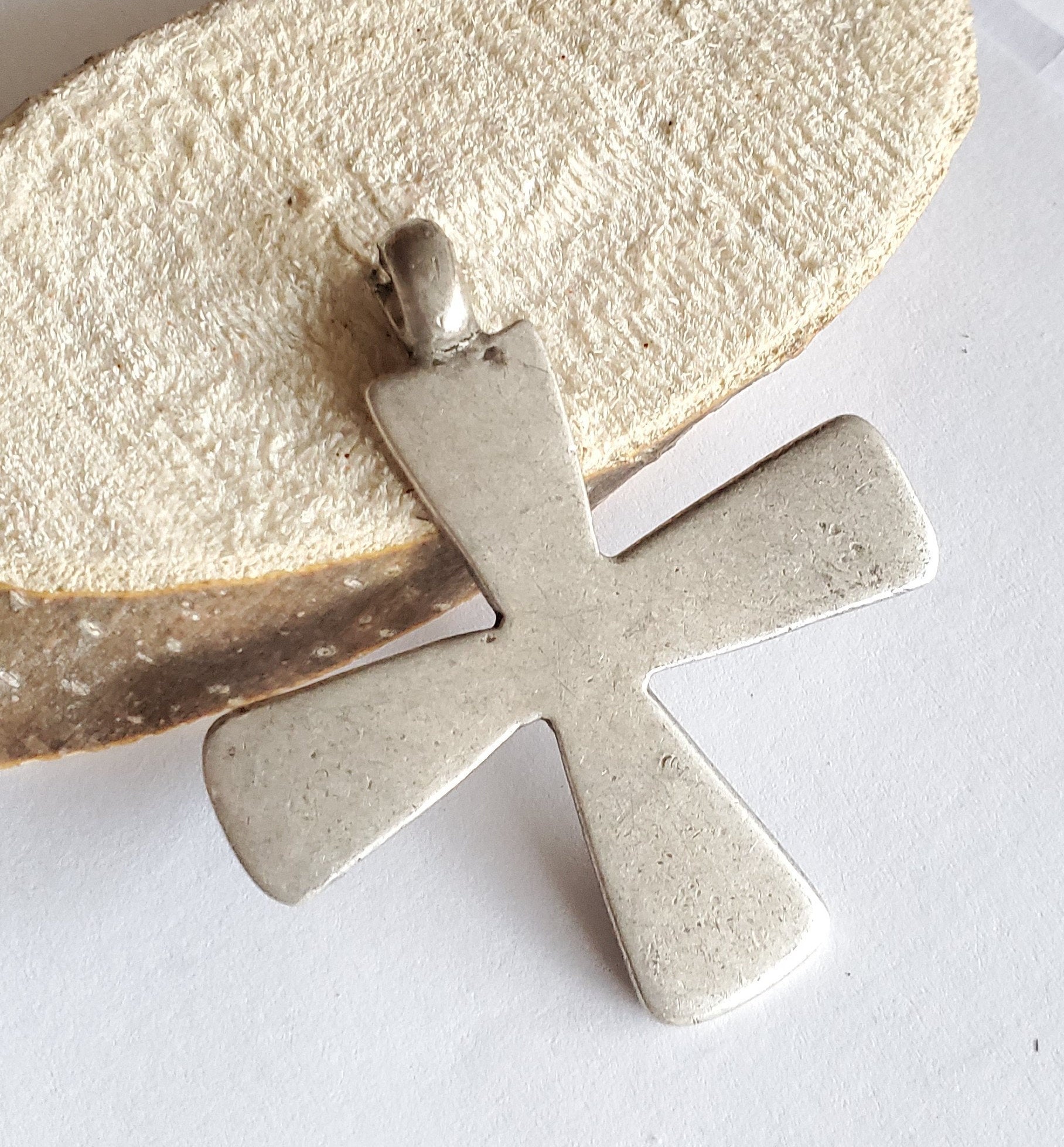 This particular cross pendant is old and has been used.