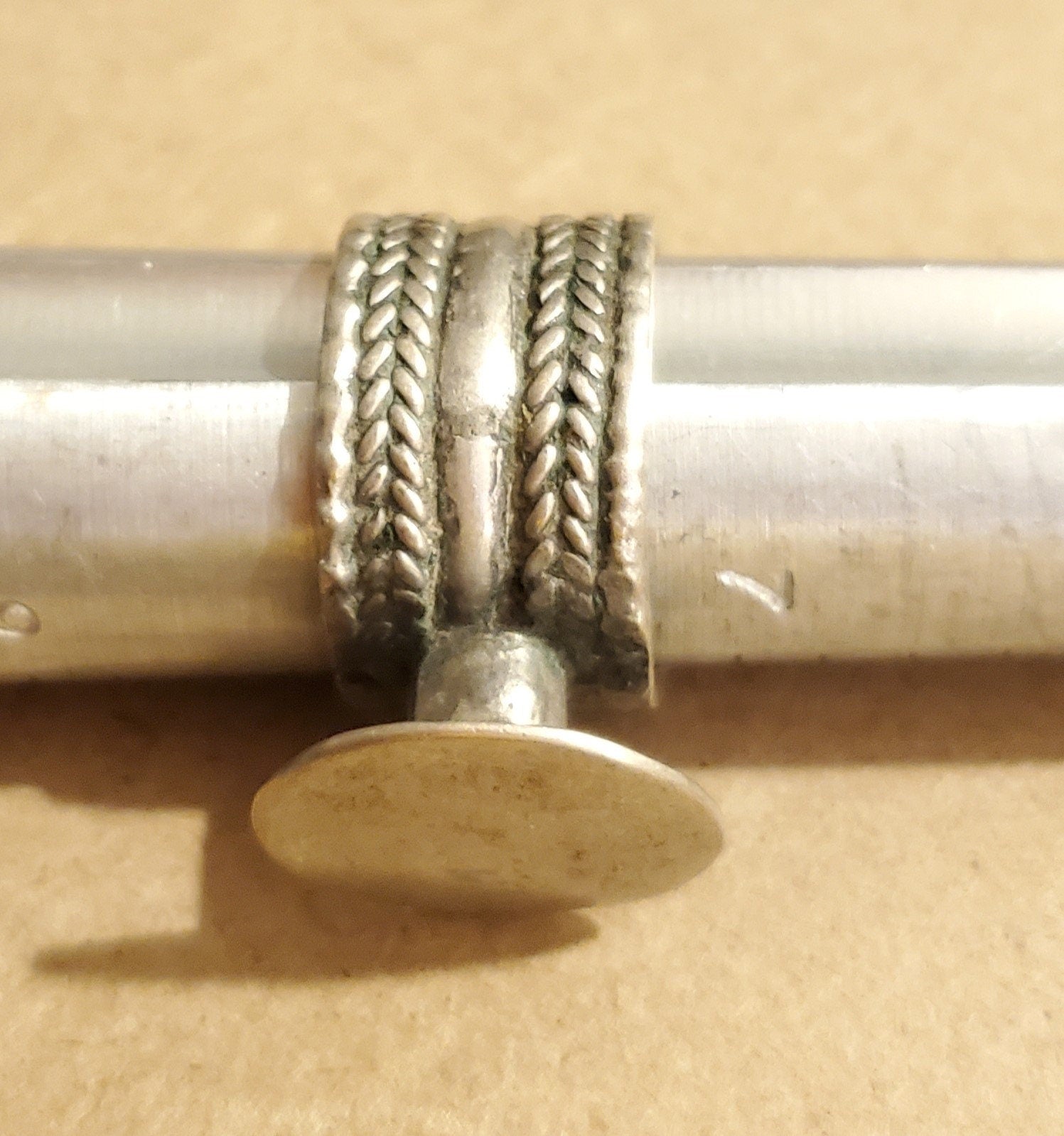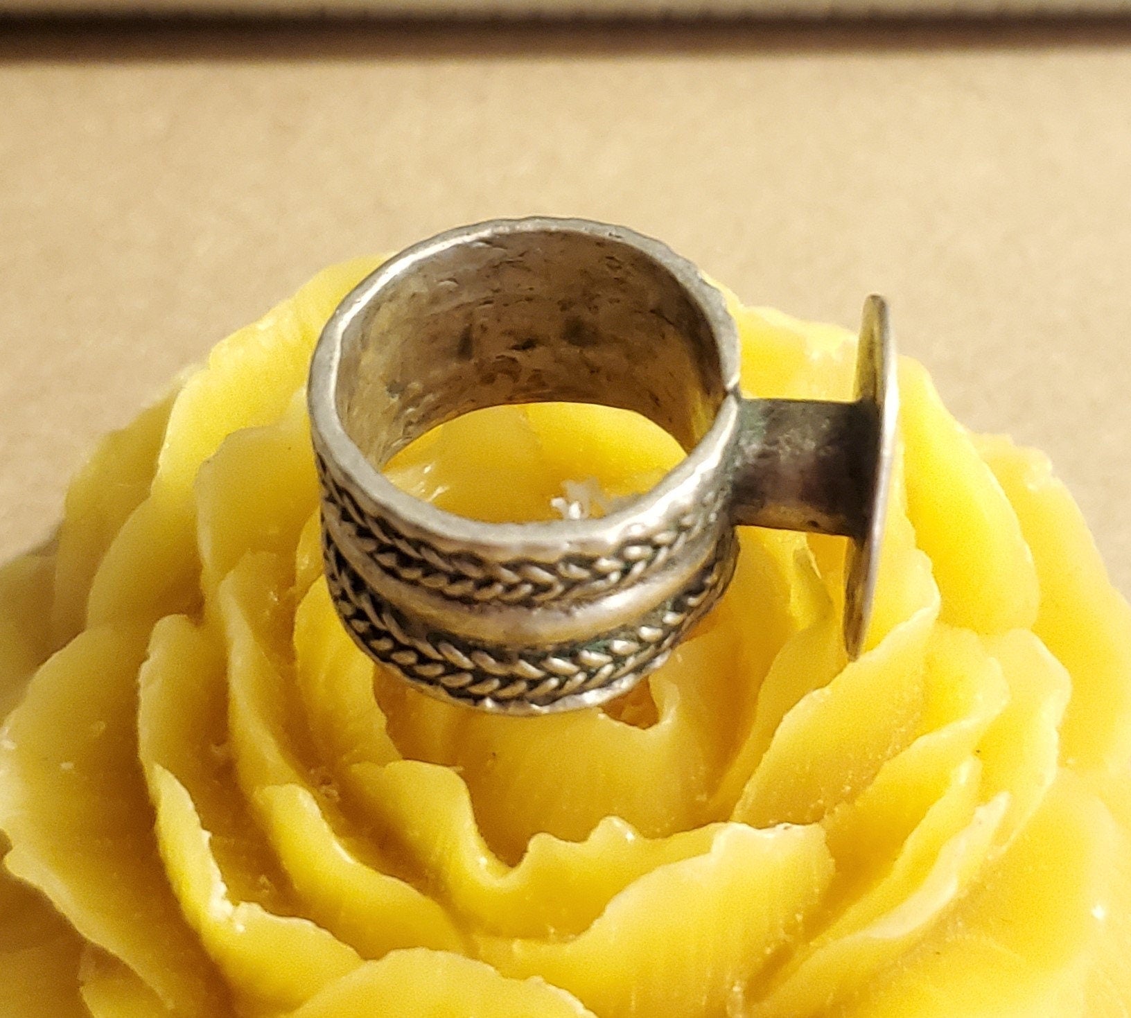 Antique Silver Ethiopian Ring, tribal jewelry, unique high-silver content piece from Ethiopia. Ring size 8, dimensions 22mm x 22mm, weight: 18 gr, in good condition (refer to pictures). Although unmarked, it has been acid tested and confirmed to be 925 silver. A collectible Ethiopian wedding ring, among other items available at africanbazaarus.com.