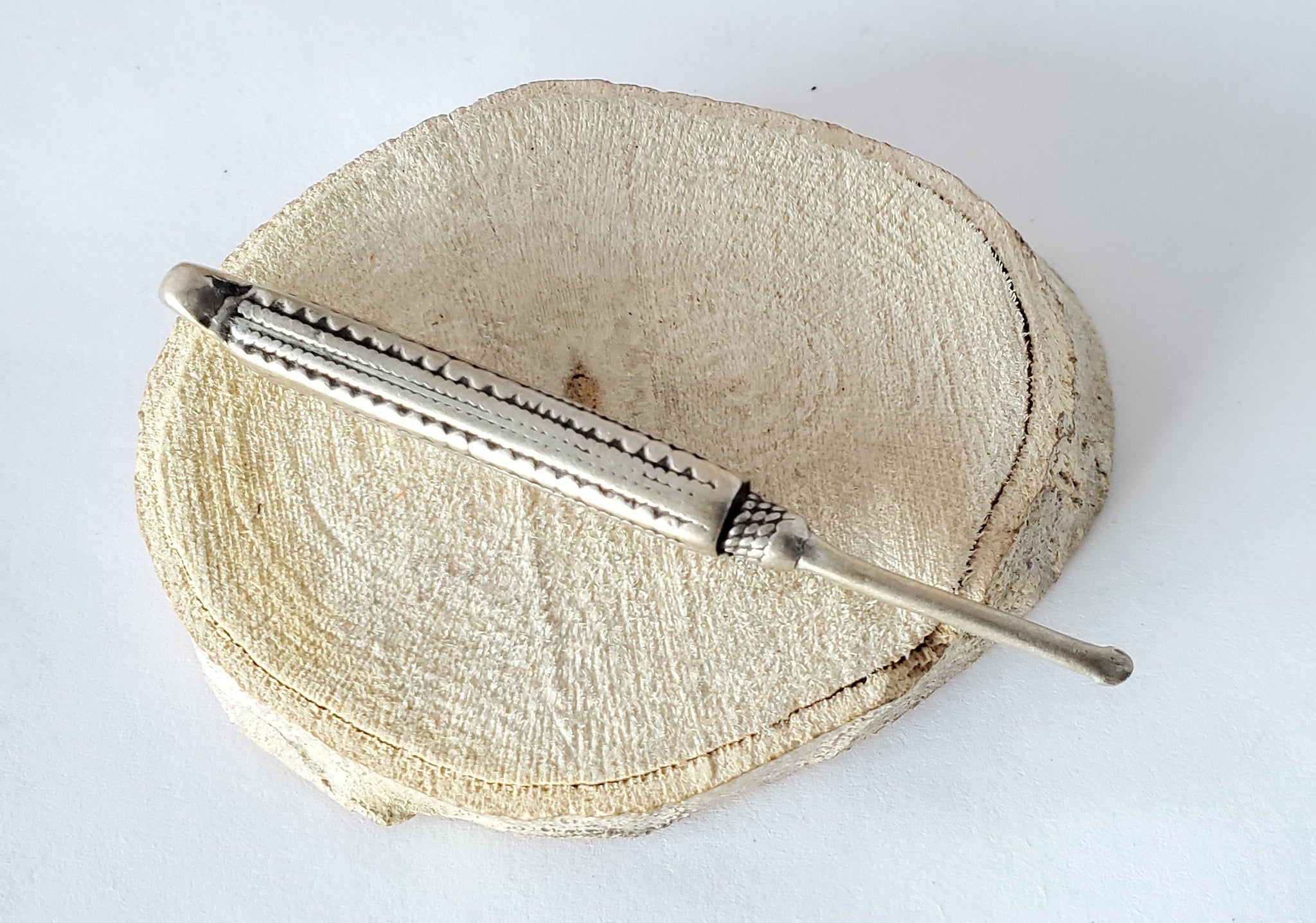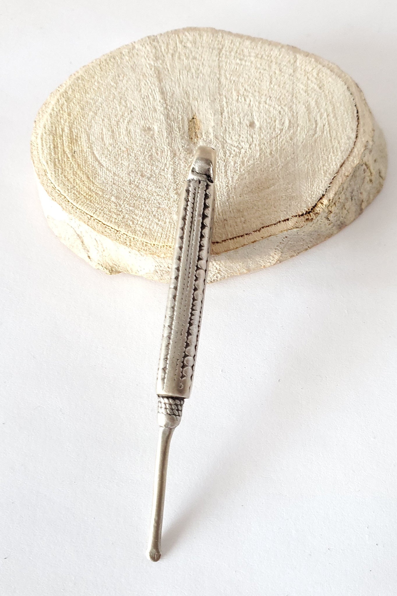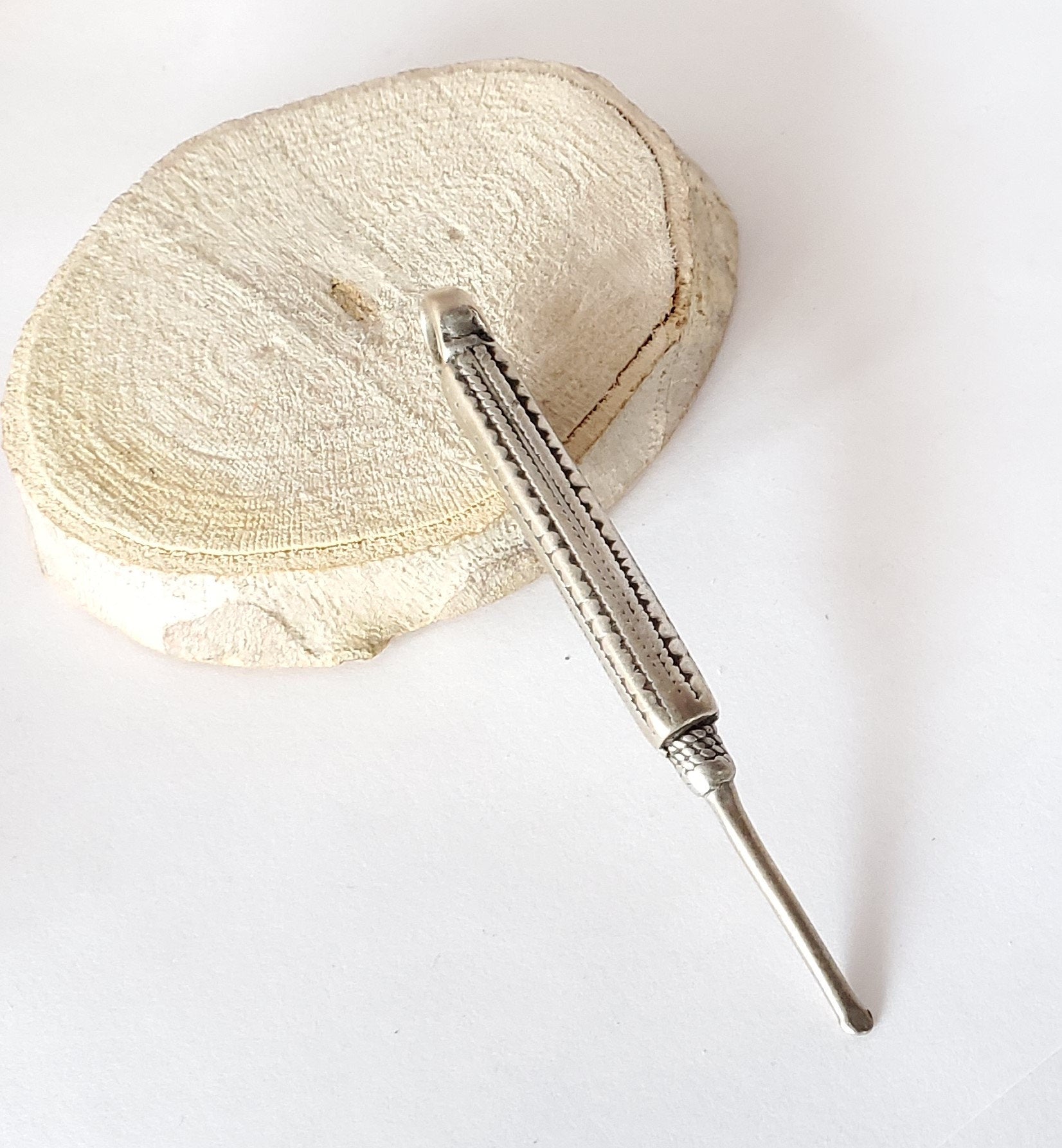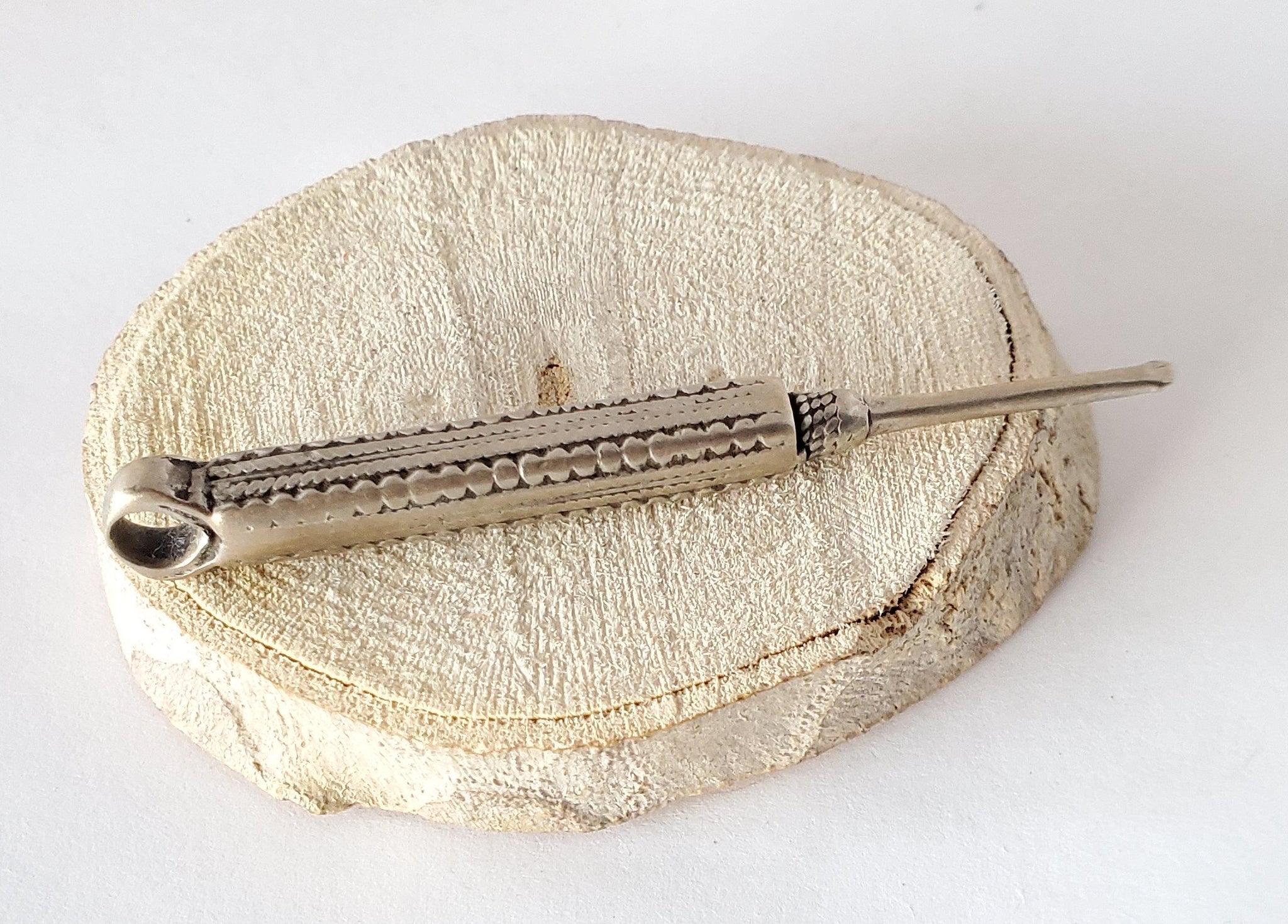 Antique silver grooming tool from Ethiopia or Yemen which would have been worn as a pendant and used to clean ears as needed. High silver content and over 100 years old! 2.5 long x .5"wide x 8mm thick with a large 22mm loop for stringing .very collectible and would be perfect for every day wear on a necklace or adding to your Ethiopian collection. CONTACT ME IF YOU WANT TO SEE MORE PIC I DO HAVE MORE THANK YOU