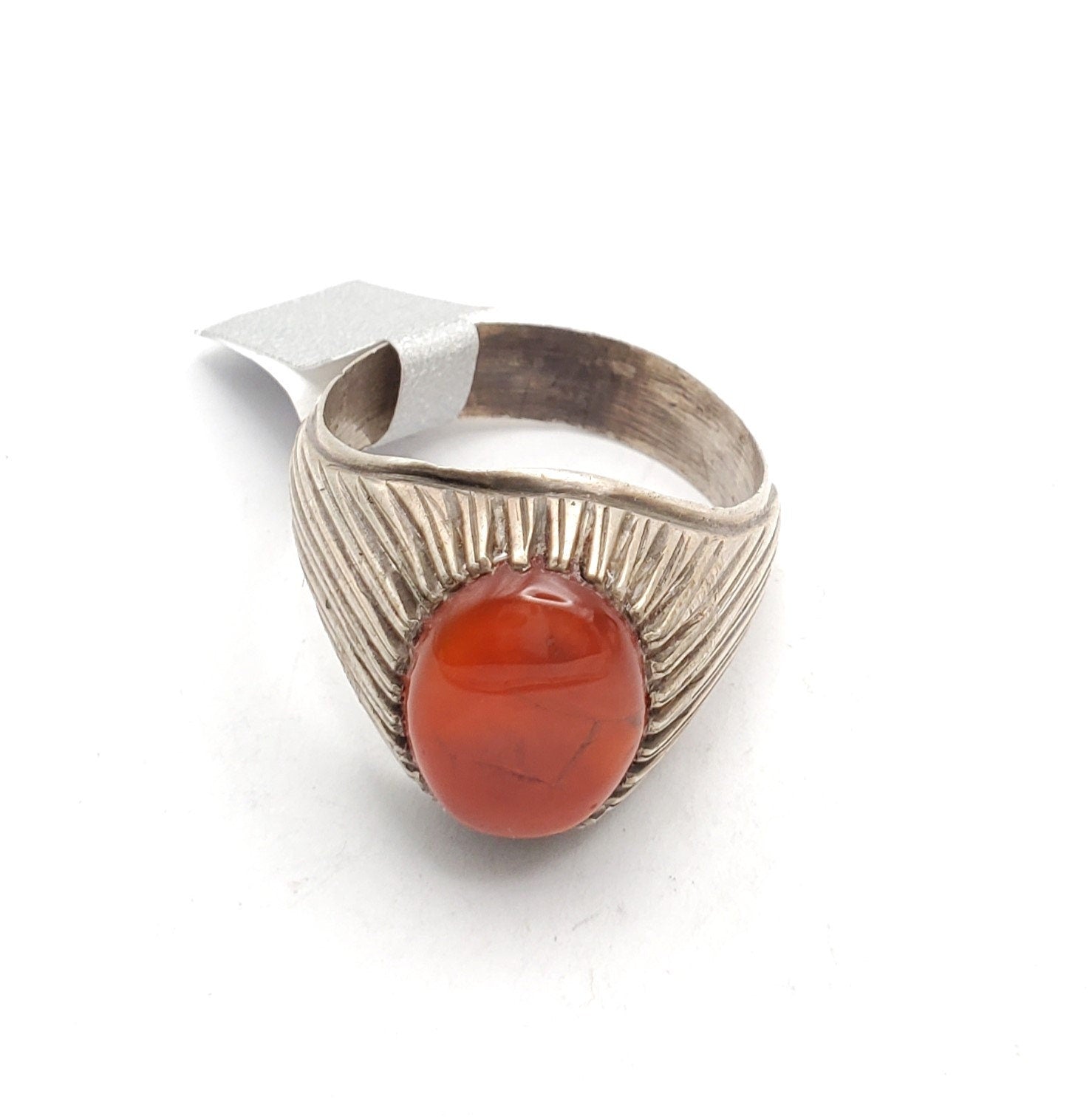 Antique Yemen Carnelian Silver Ring - Tribal Wedding Jewelry, Size 11