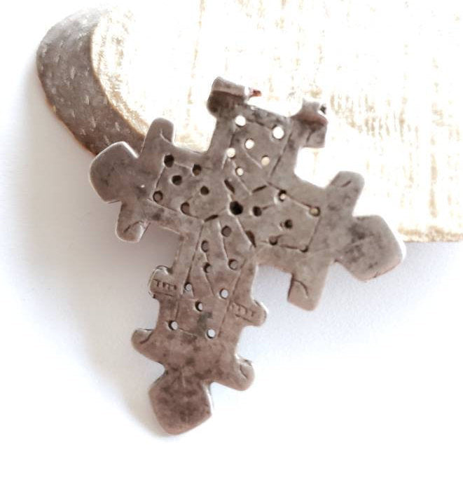 This is a very beautiful old handmade Ethiopian Christian 1 silver cross pendant in some 7 small pendants they used to be part of a cross selling them as a group from 1900s made of good silver done by highly skilled silversmith collector's Coptic cross in good solid silver is a display of good craftsmanship. In Ethiopia particularly among Orthodox Church followers, to wear a cross implied to be protected by the lord himself as well as to show that they are a devoted Christian. Neck or pictorial crosses are tied round their owner's neck with a piece of blue thread or cord, which was sometimes given to the wearer at baptism. This particular cross pendant is old and has been used.