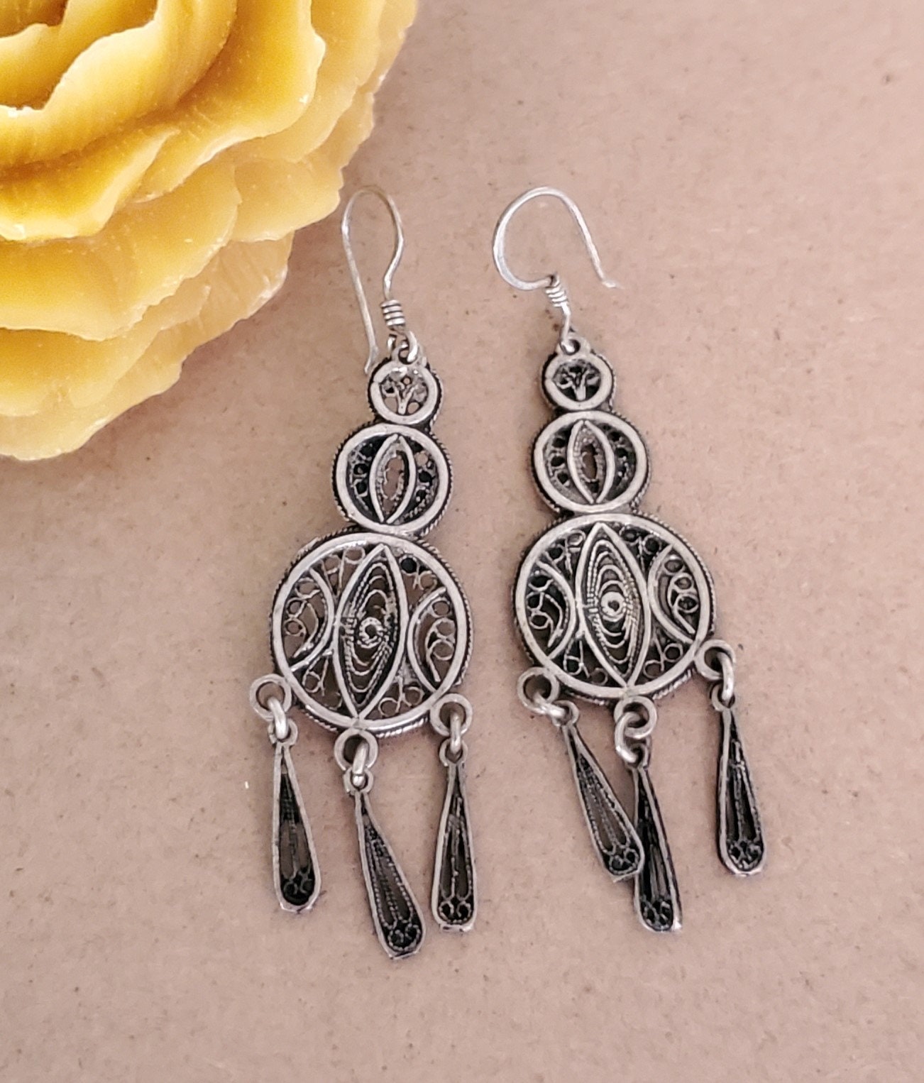 Moroccan Berber Filigree Sterling Silver Dangle Earrings silver 925,Berber Jewelry,sliver Earrings,Dangle & Drop