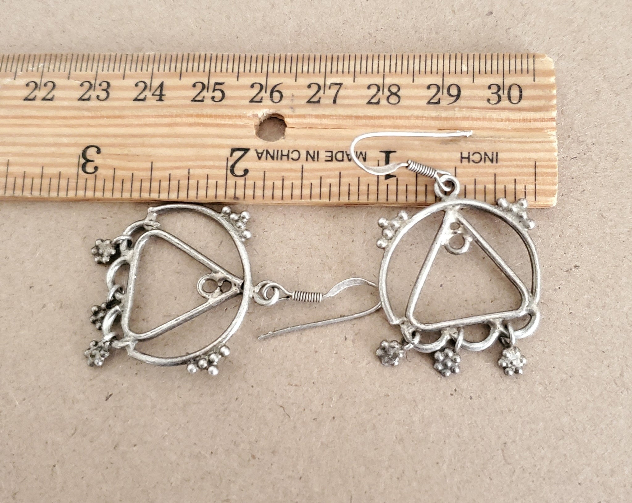 Moroccan Berber Filigree Sterling Silver Dangle Earrings This is a great authentic Filigree jewelry from Morocco. Each earring measures just over 2" long and just under 1'' wide./ 11.gr The workmanship is wonderful .These earrings were hand made sterling silver 925 new high-silver content if you have any questions - Feel free to contact me. . Thank you for visiting my shop All my jewelry has been collected over 20 years ago .I will be listing more pieces shortly as I am constantly always working on posting more. piece to add to the collection .I ship all over the world and price includes a tracking service.