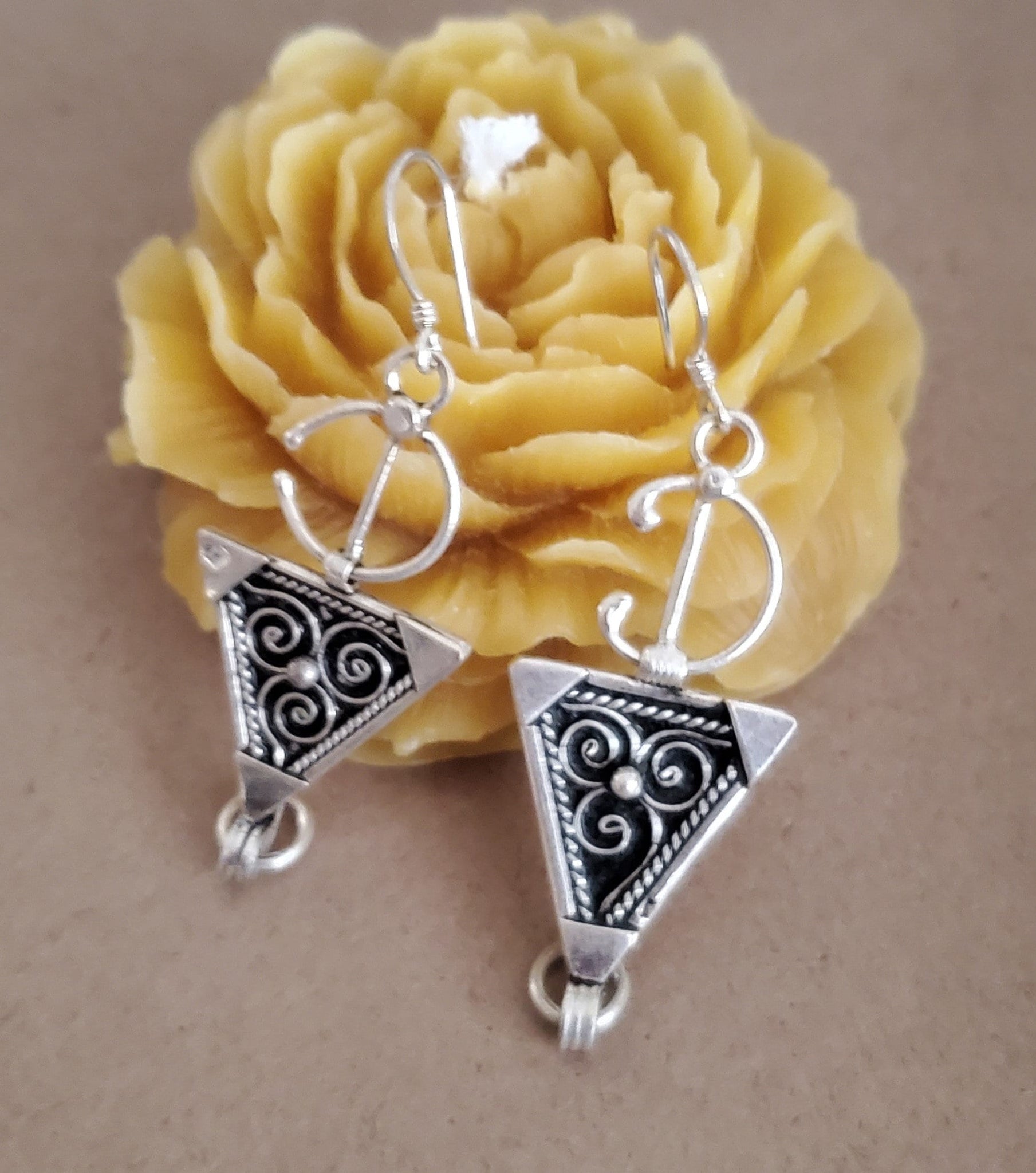 Moroccan Berber Sterling Silver Dangle Earrings This is a great authentic jewelry from Morocco. Each earring measures just over 2" .5 long and just under 1‘‘ wide./ 8.gr The workmanship is wonderful .These earrings were hand made sterling silver 925 if you have any questions - Feel free to contact me. . Thank you for visiting my shop All my jewelry has been collected over 20 years ago.I will be listing more pieces shortly as I am constantly always working on posting more. piece to add to the collection.I ship all over the world and price includes a tracking service........africanbazaarus.com