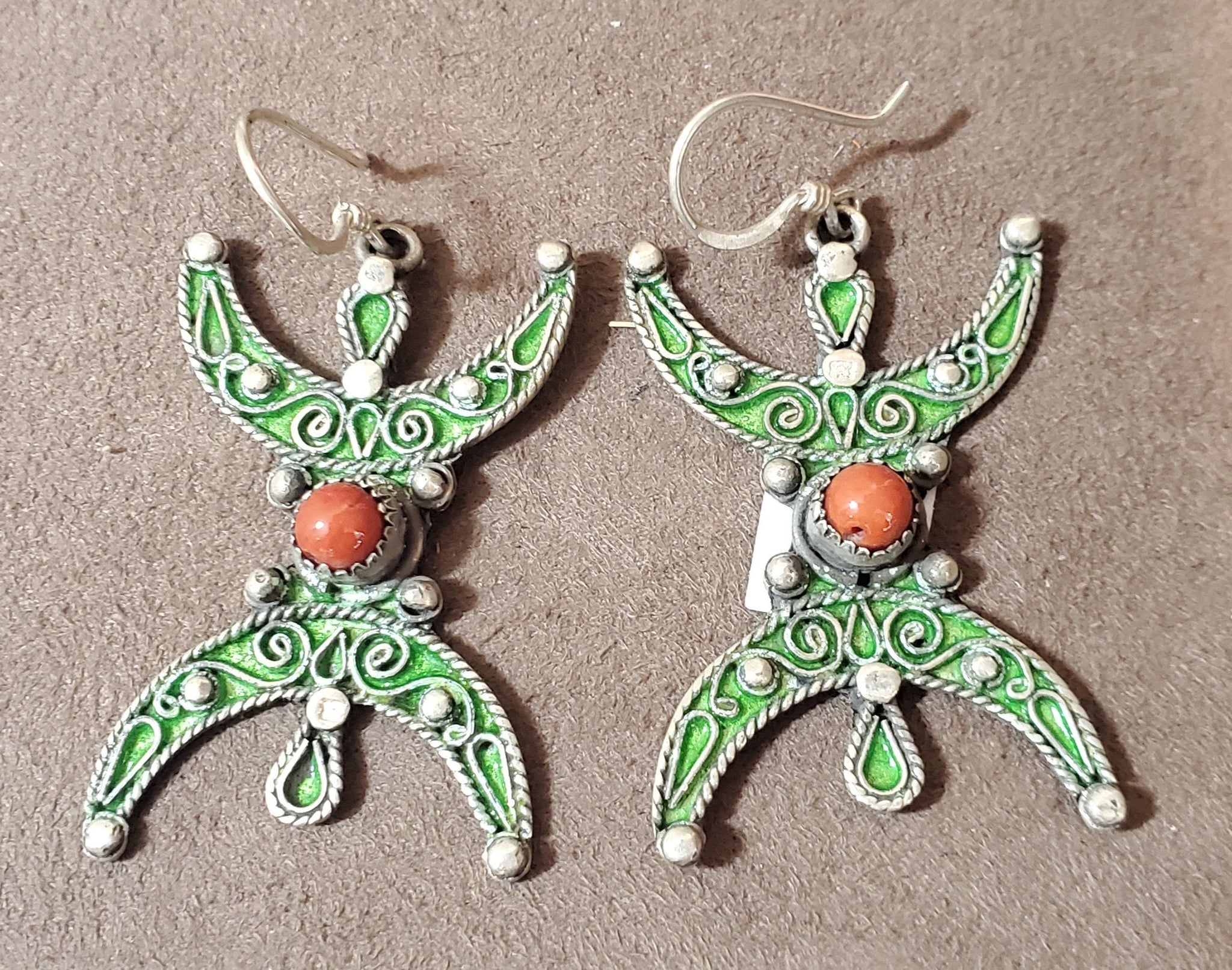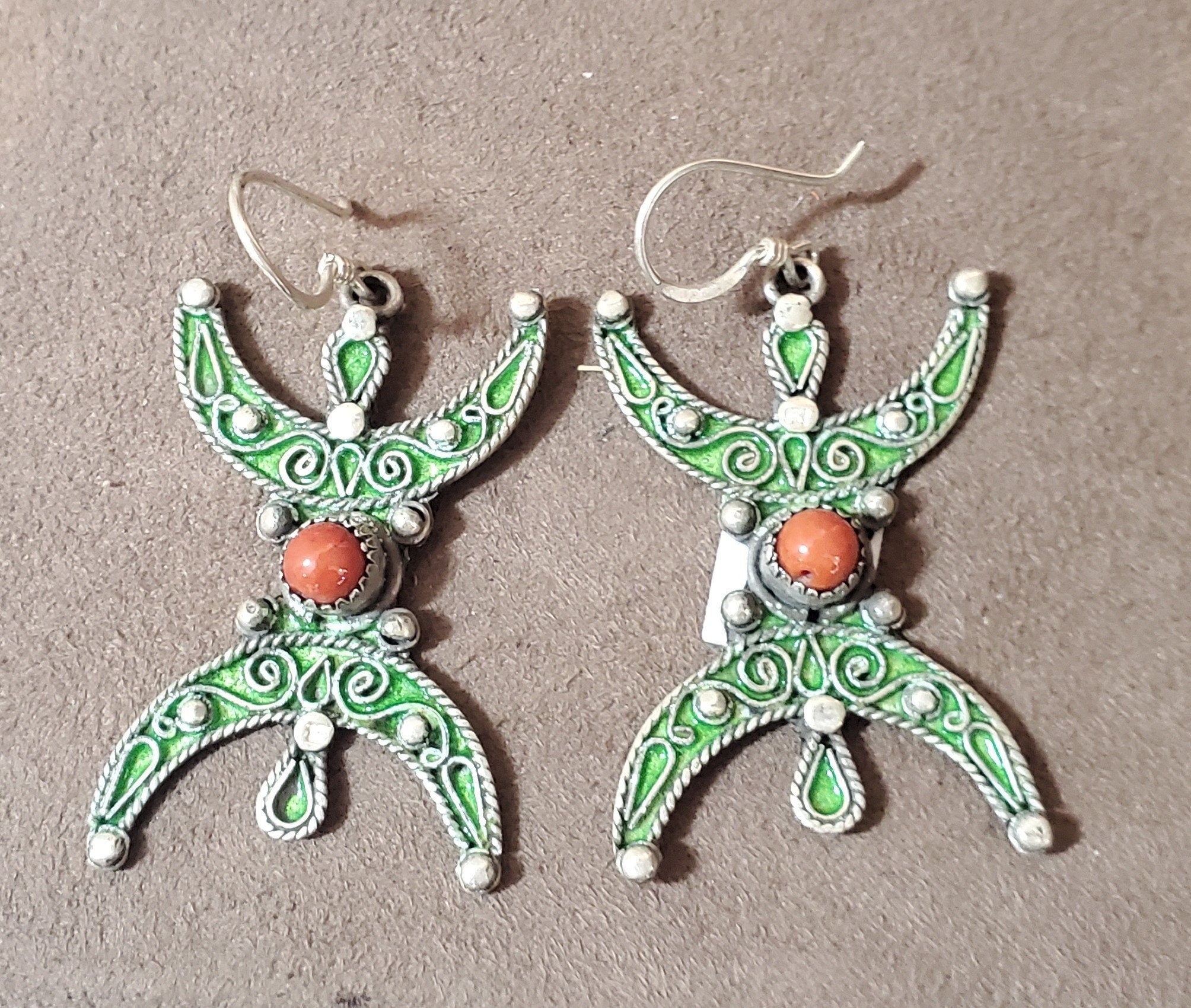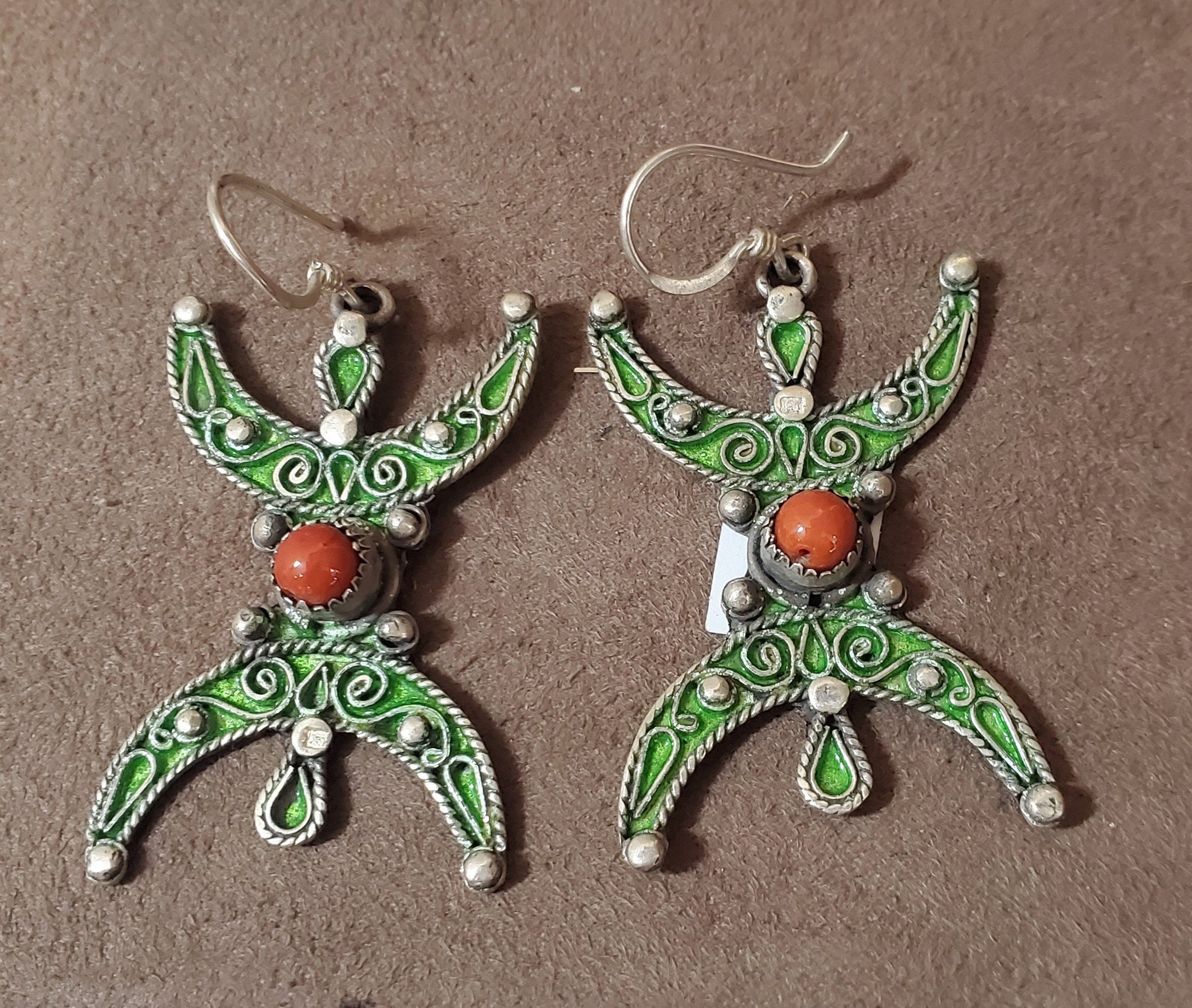 Moroccan Berber Sterling Silver enamels Dangle Earrings, Berber Jewelry, sliver Earrings, Dangle & Drop Earrings,