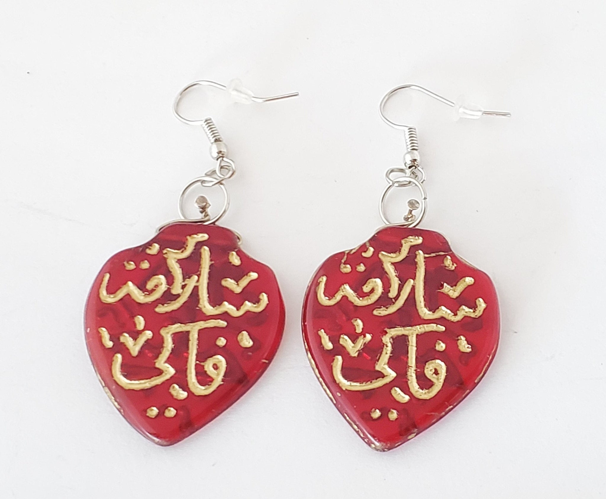 Moroccan Czech Glass Red Earrings with Silver Ethnic Tribal is a traditional Large Czech glass beads with gold design Earrings