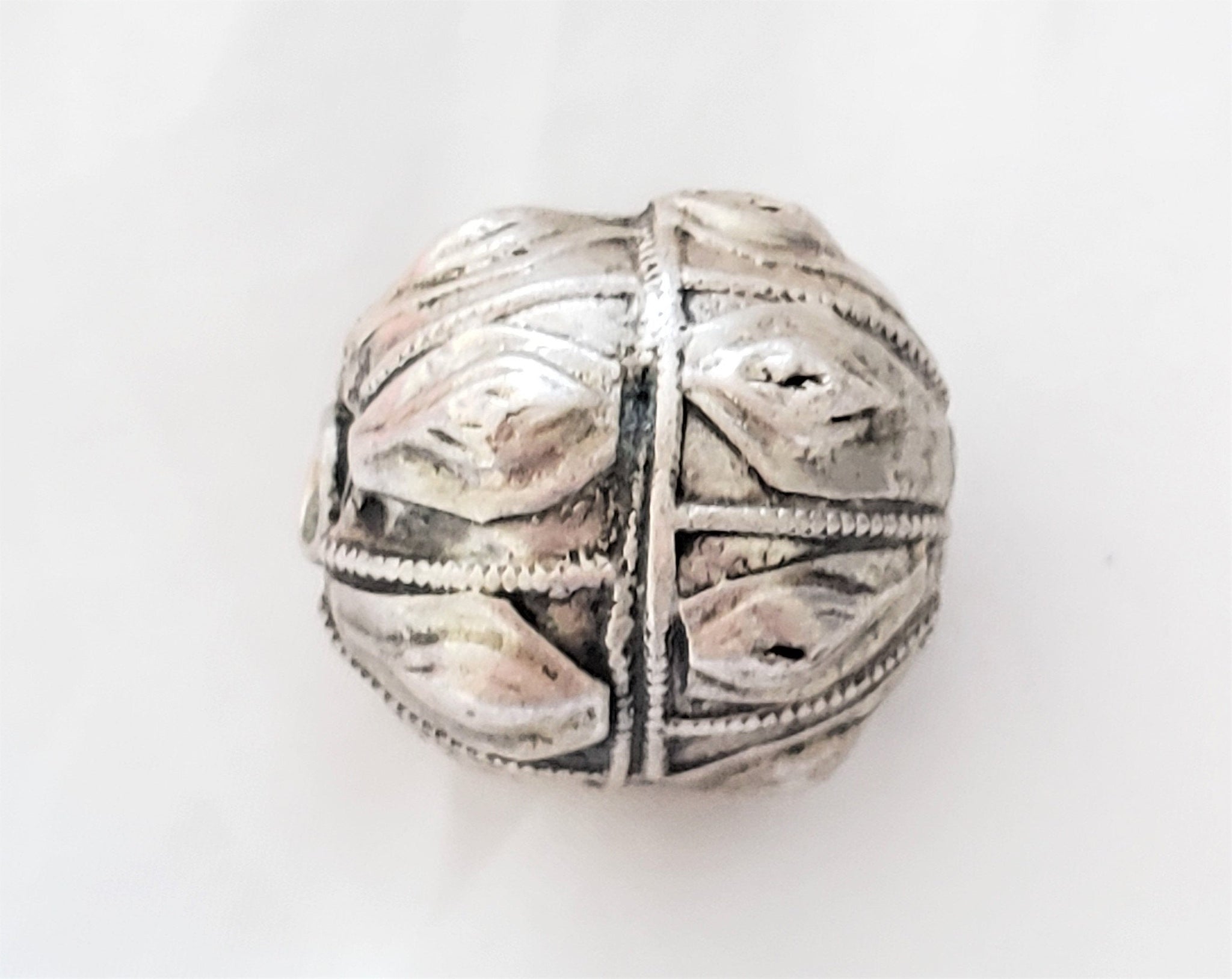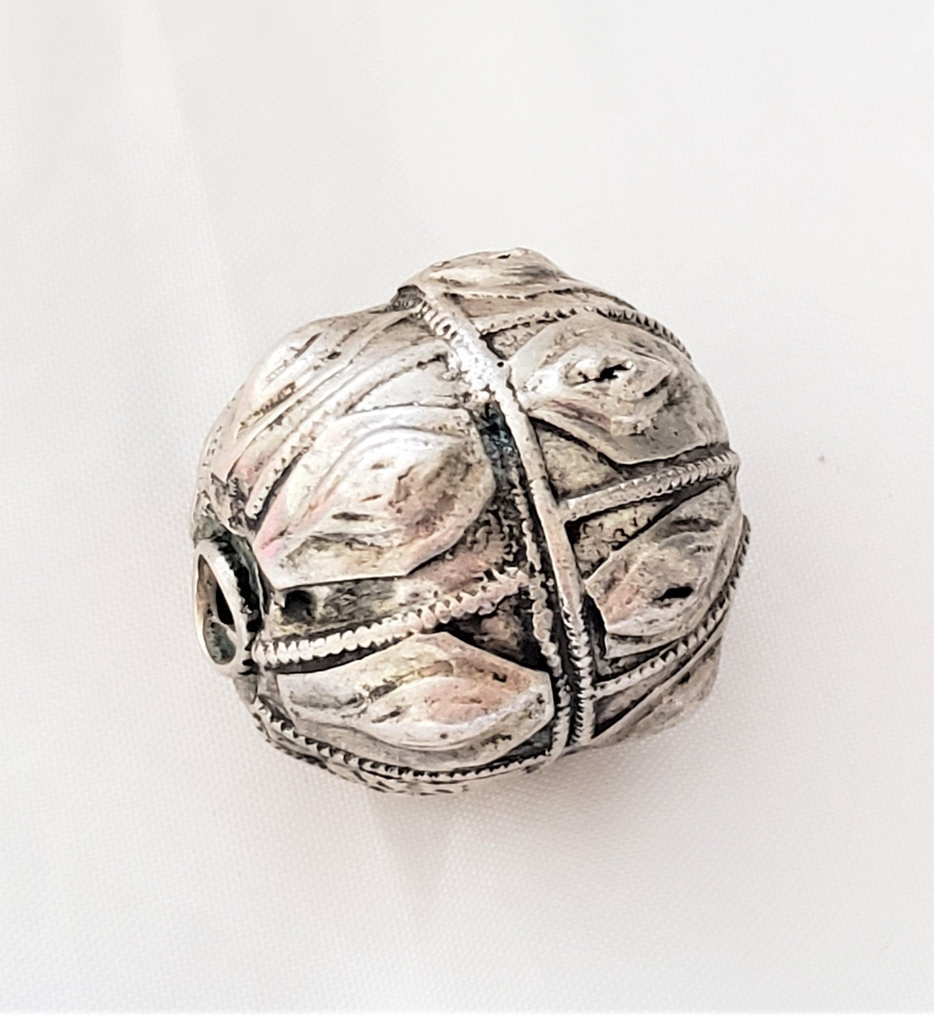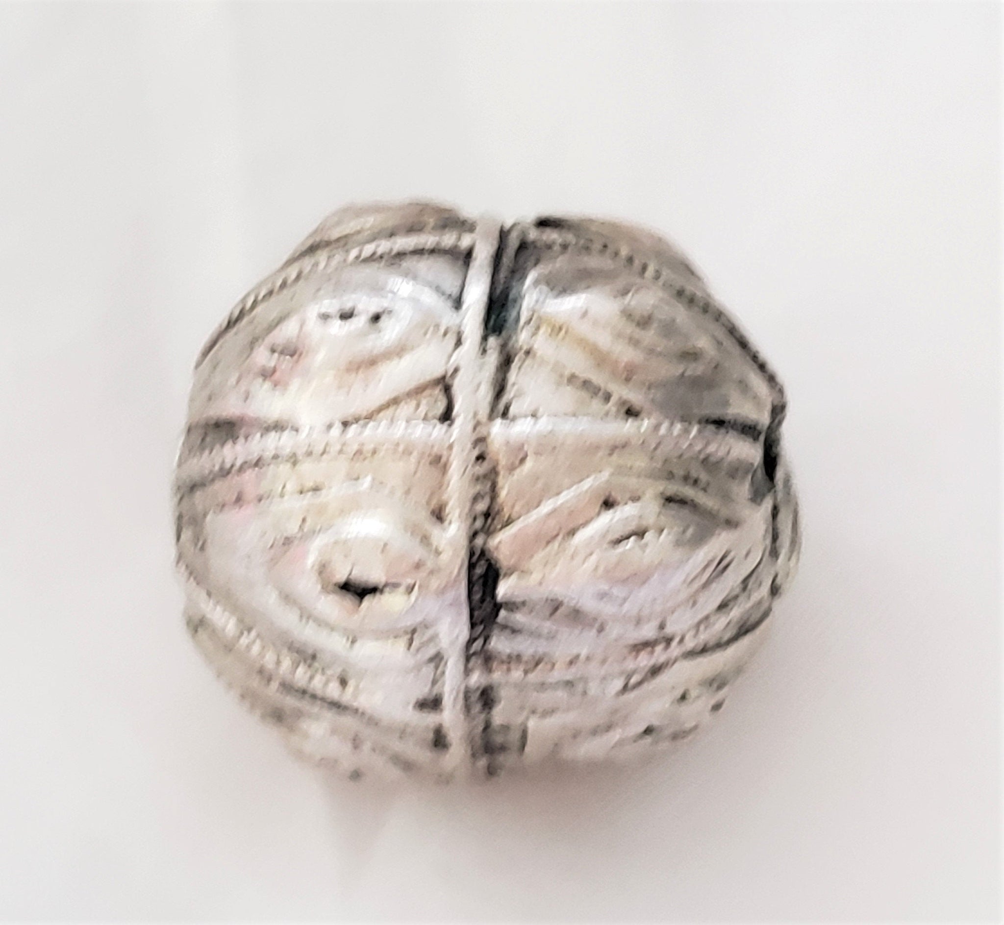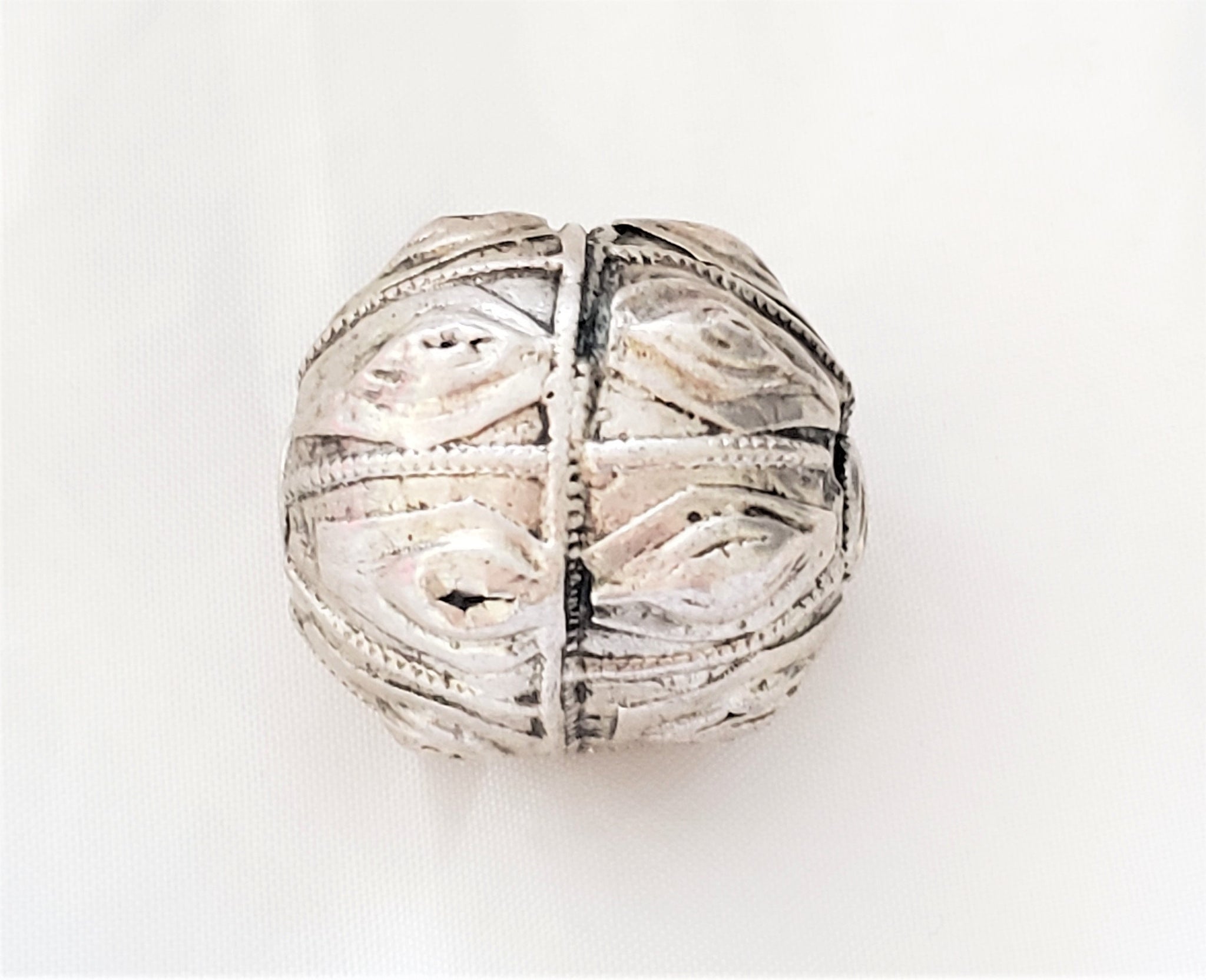 old silver hallmarked beads from Yemen, circa 1910s. Rare with intricate silver smiting Beautifully made, decorated and shaped. Good alloy of silver. Old pieces with beautiful patina,This kind of ones. Good condition Collectible and useful as jewelry supplies Measures:1''x 1''