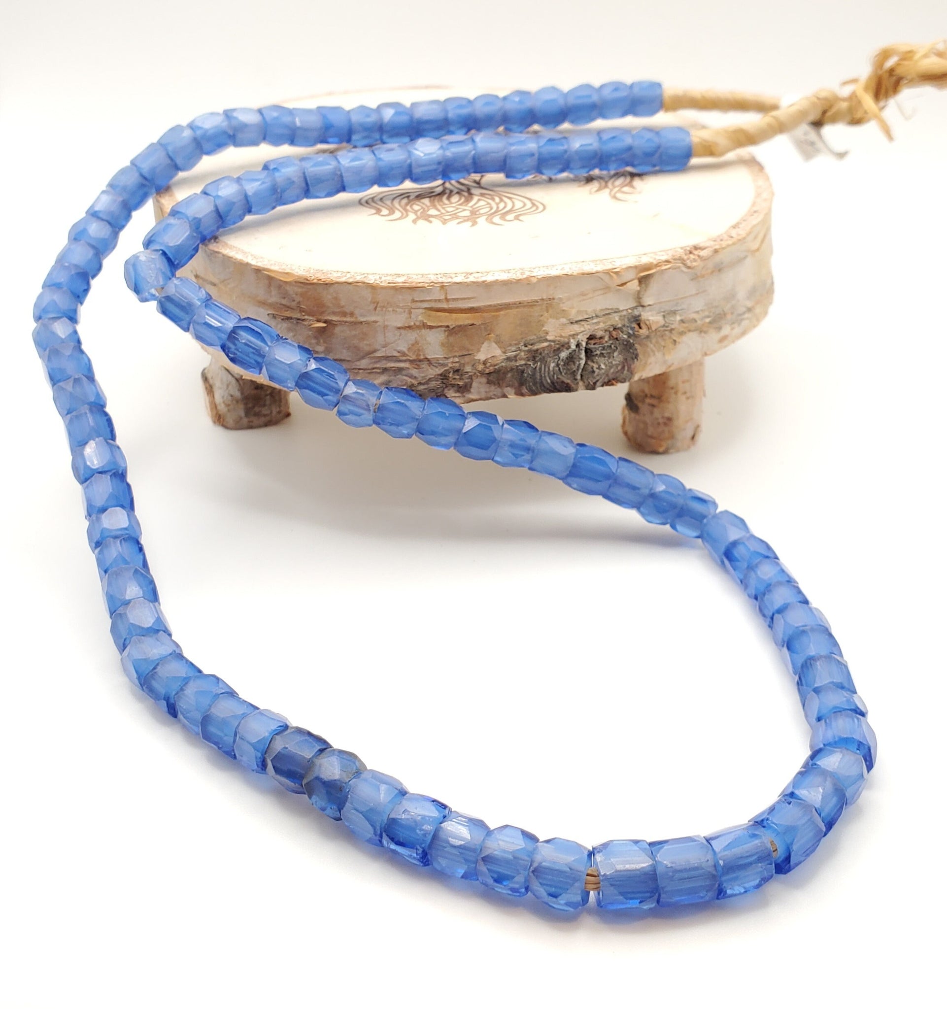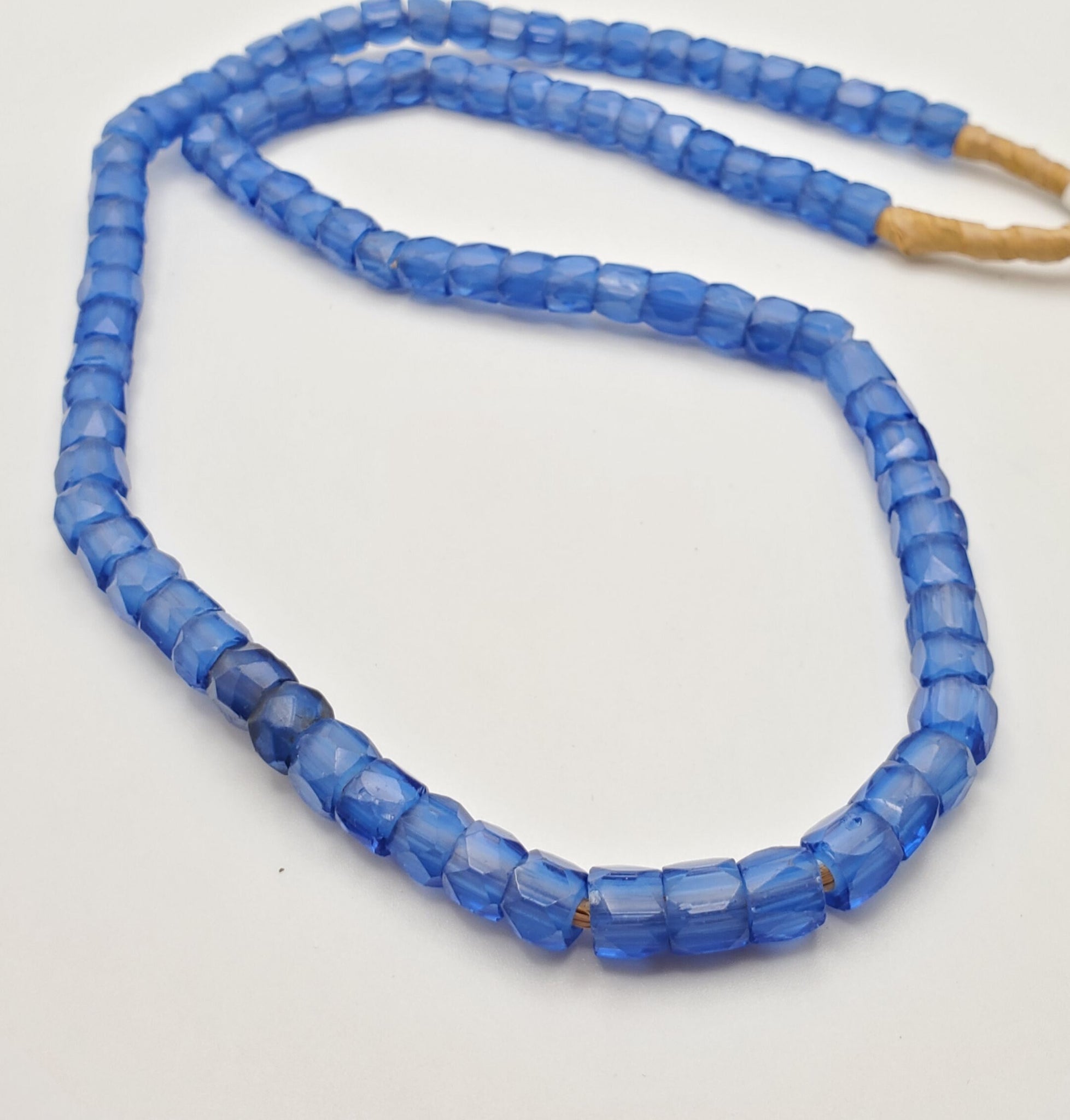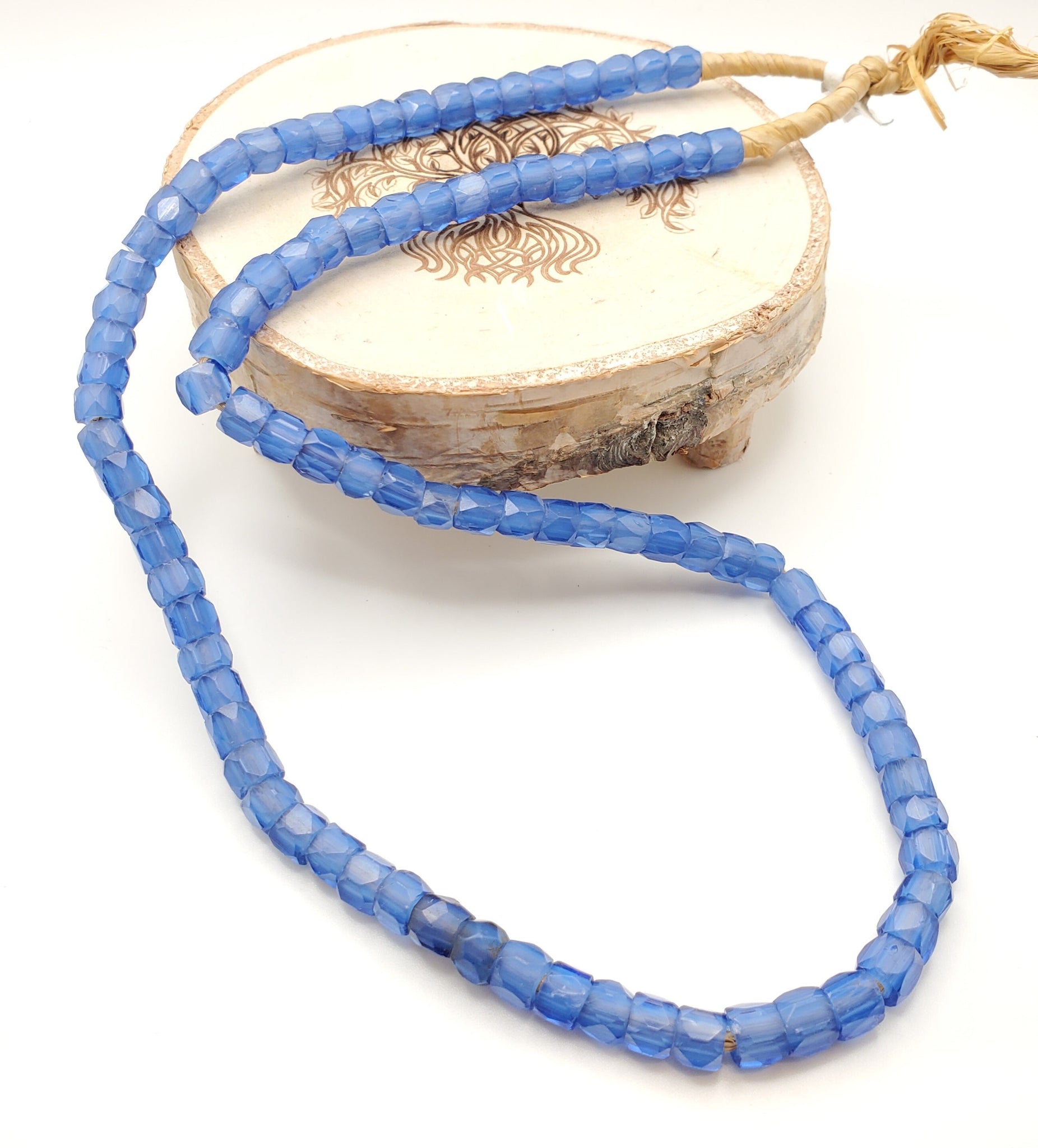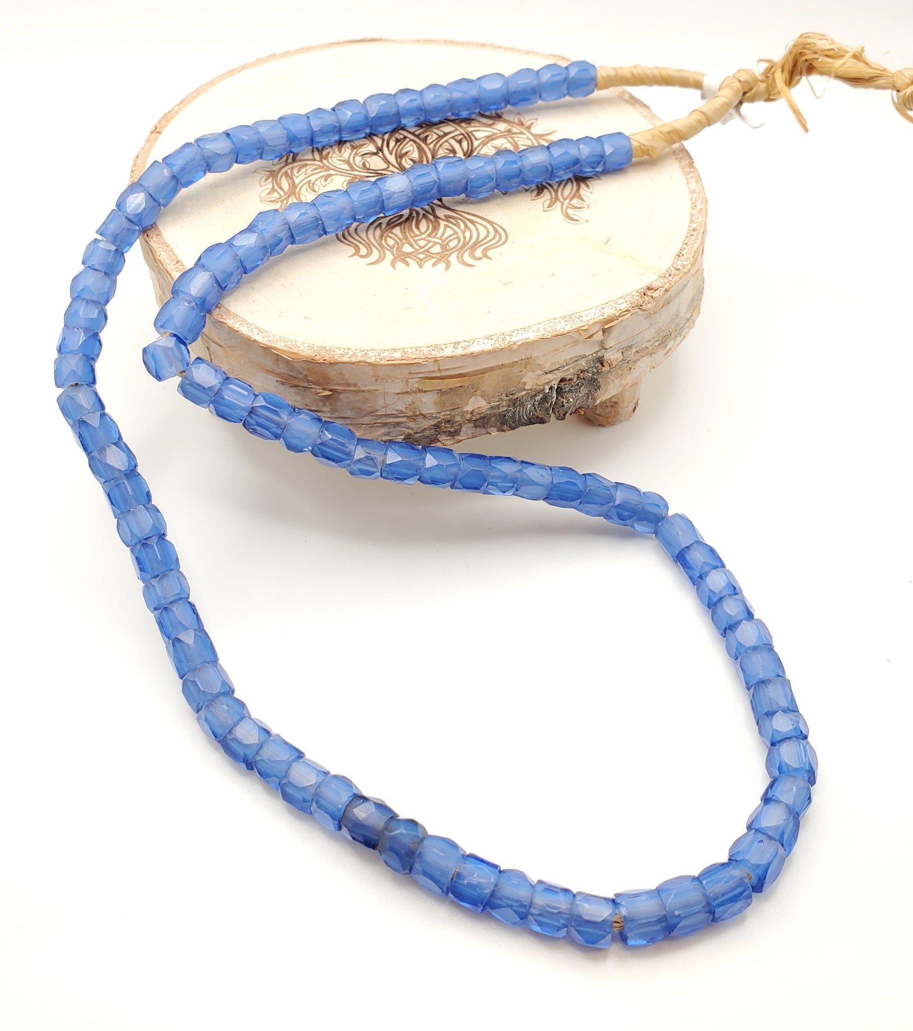 beautiful ancient Antique Bohemian Russian Blues Beads made in the late 19th centuries. RARE set of beads featuring multiple layers of transparent blue glass.