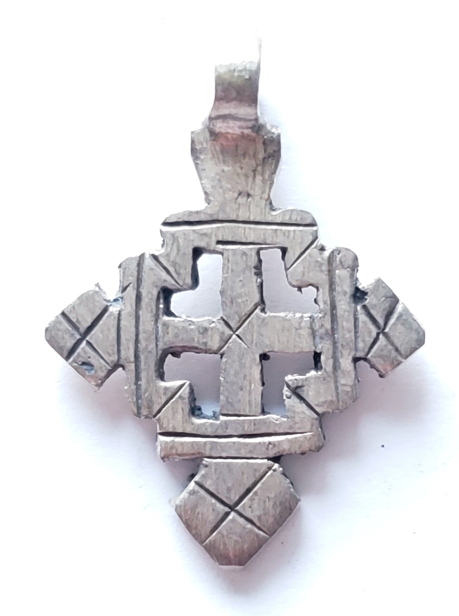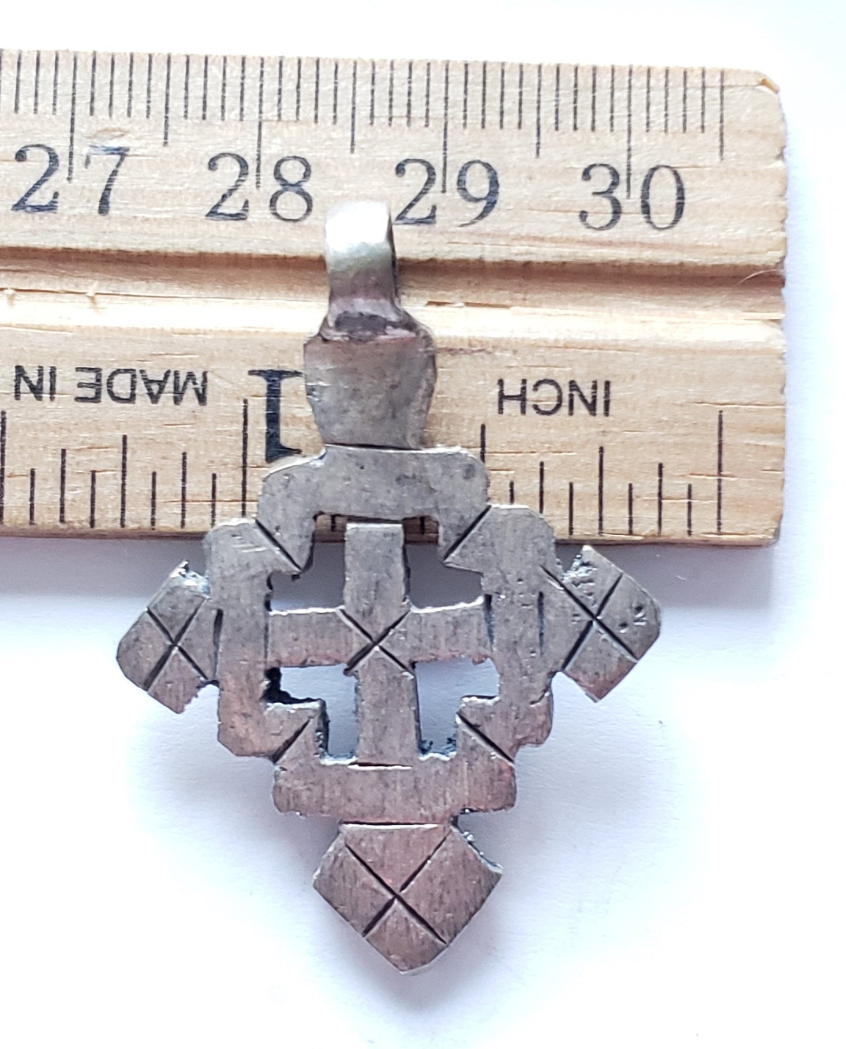 beautiful large handmade Ethiopian cross pendant made of steel. In Ethiopia particularly among Orthodox Church followers, to wear a cross implied to be protected by the lord himself as well as to show that they are a devoted Christian. Neck or pictorial crosses are tied round their owner’s neck with a piece of blue thread or cord, which was sometimes given to the wearer at baptism. This particular cross pendants they have not been used. Measures approximatelty 2" x1''.5 long great condition Collectible other shop https://www.etsy.com/shop/Africanbazar2US?ref=seller-platform-mcnav